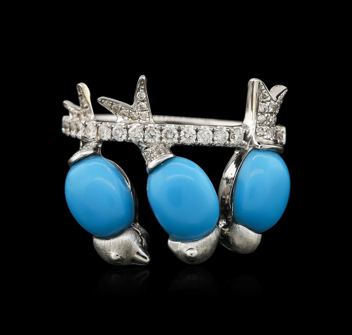 One ring featuring: 18KT white gold weighing 4.73 grams containing three turquoise with a total weight of 1.35ct and 46 round diamonds with a total weight of 0.31ct.