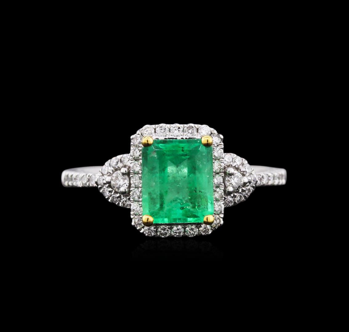 One ring featuring: 18KT white gold weighing 2.48 grams containing one emerald center stone with a total weight of 1.44ct and 52 round diamonds with a total weight of 0.35ct.