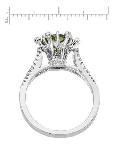 One 18KT White Gold 1.50ct Peridot and Diamond Ring. (1) Peridot stone with a total weight of 1.50cts. (48) Round Diamonds with a total weight of 0.22cts with a color of G-H and clarity of SI-2. Total weight of this ring is 5.02 grams.