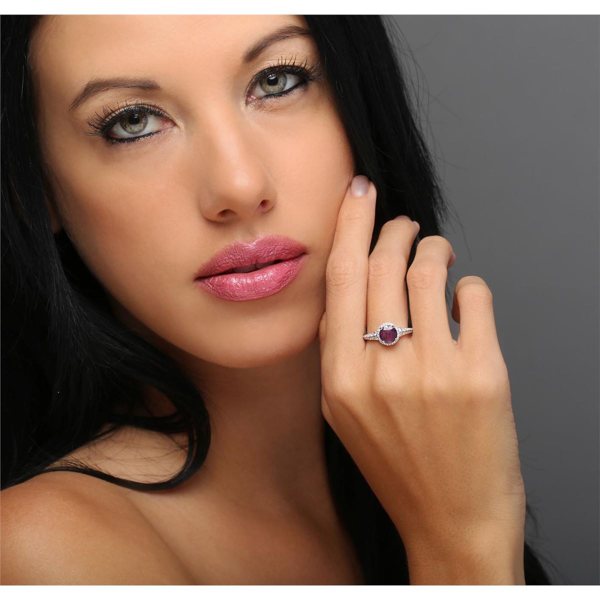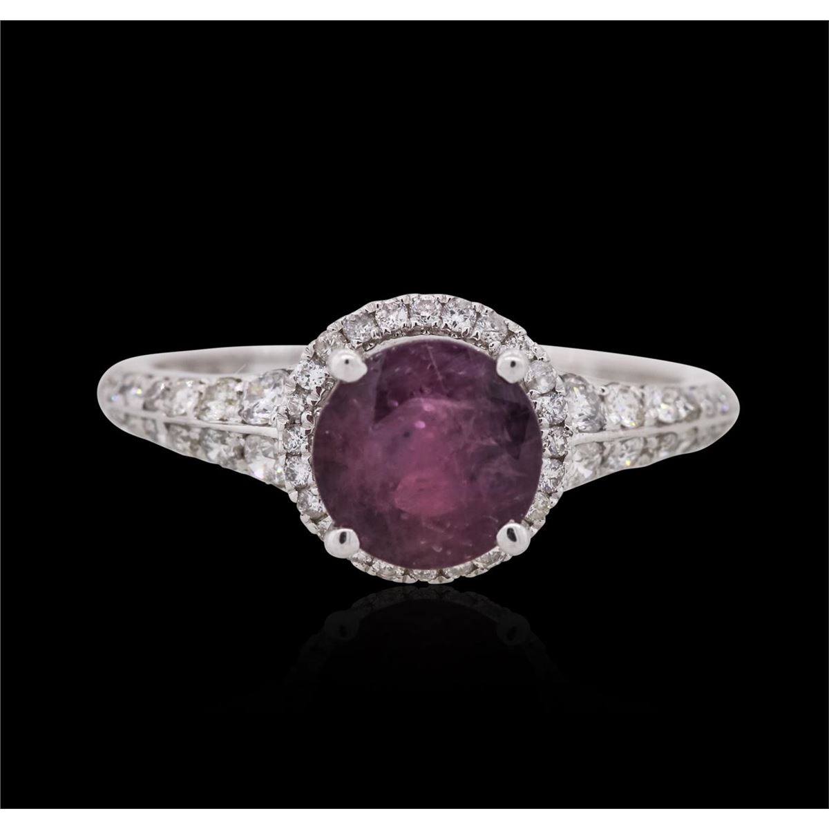 One ring featuring: 18KT white gold weighing 2.96 grams containing one ruby center stone with a total weight of 1.63ct and 52 round cut diamonds with a total weight of 0.49cts.