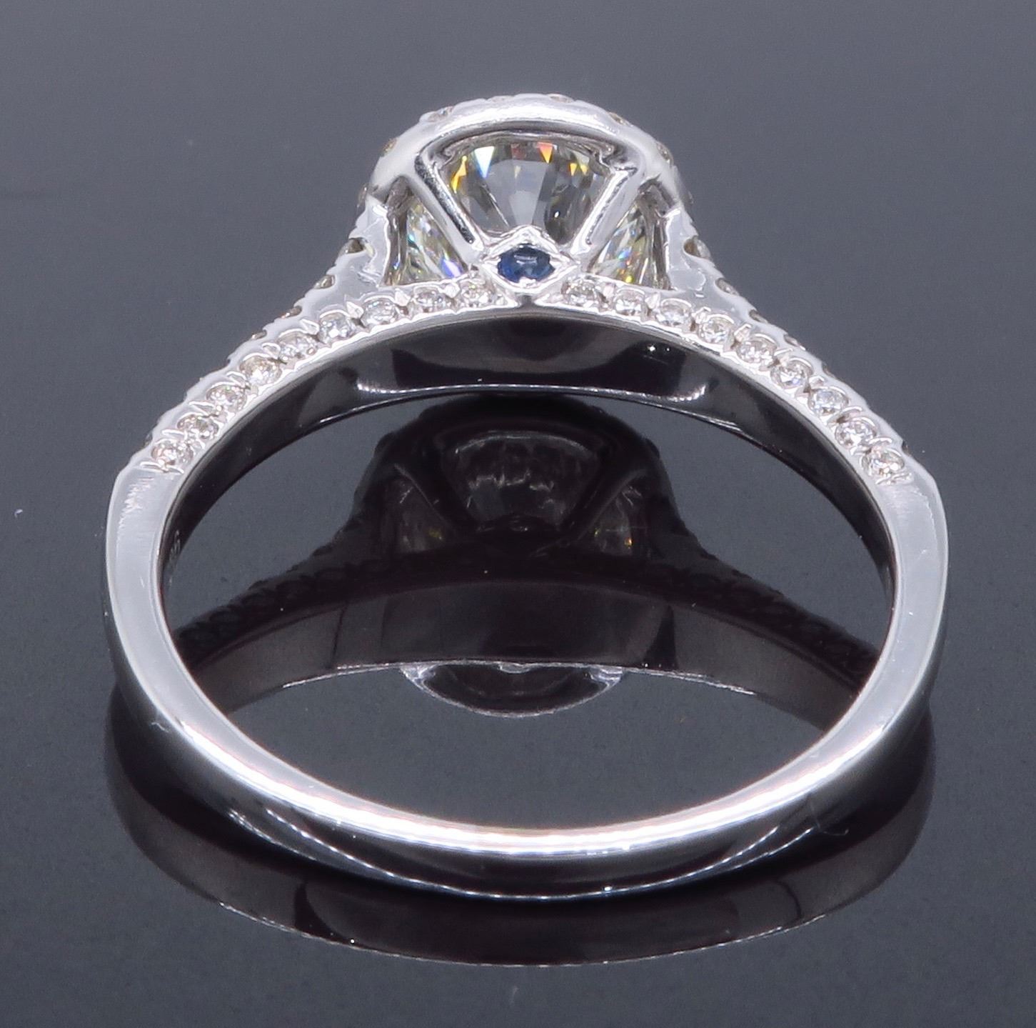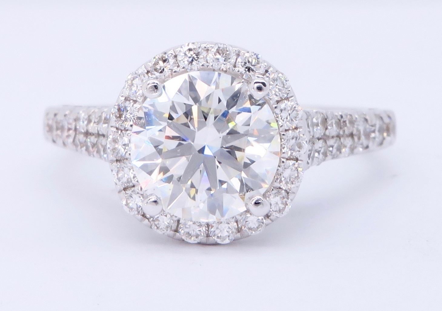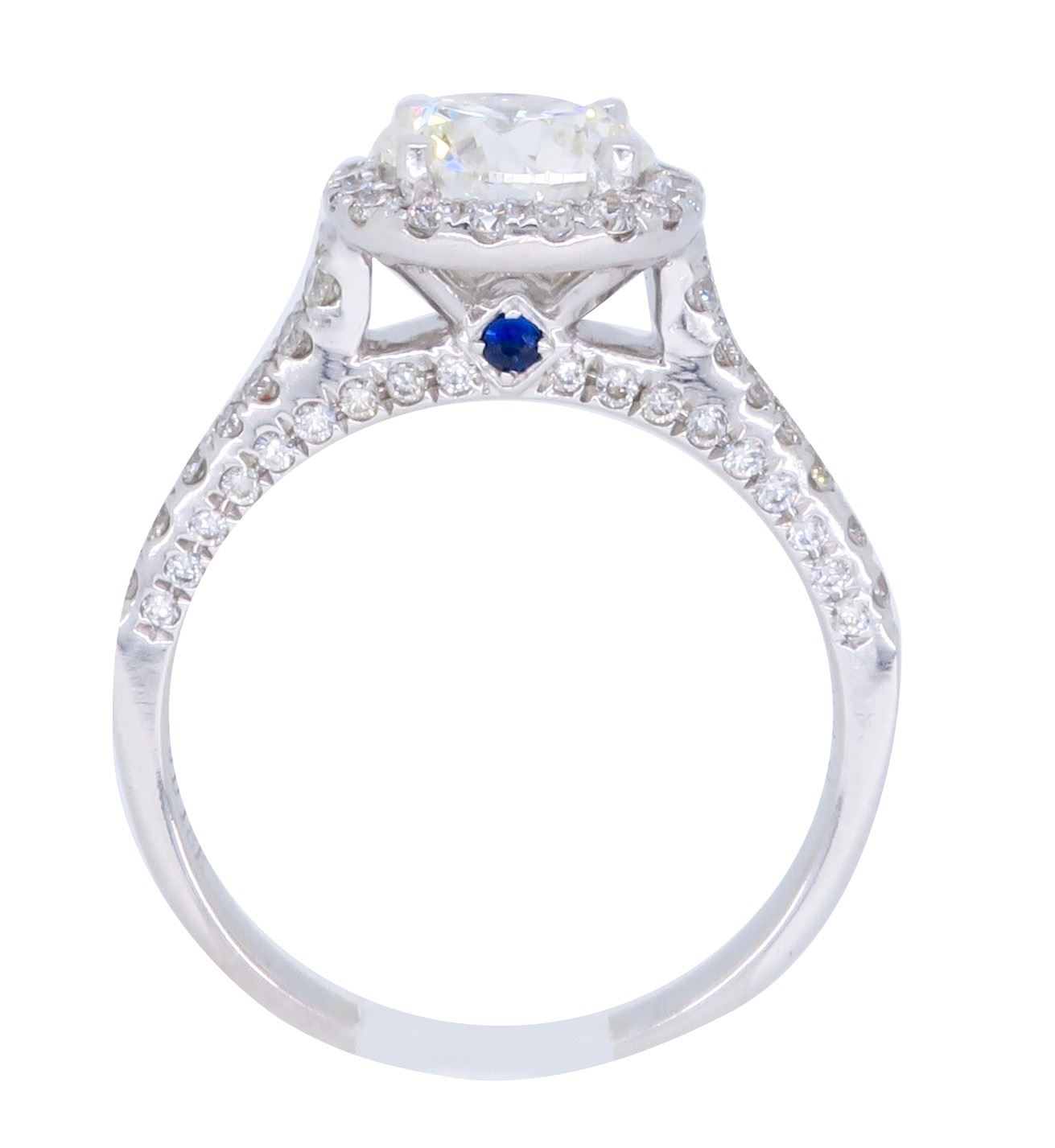 One 18KT White Gold 1.89ctw GIA Cert Diamond Ring. (1) GIA Certified round Diamond with a total weight of 1.26cts with a color of I and clarity of SI-1. Round side Diamonds with a total weight of 0.63cts. Total weight of this ring is 3.8 grams.