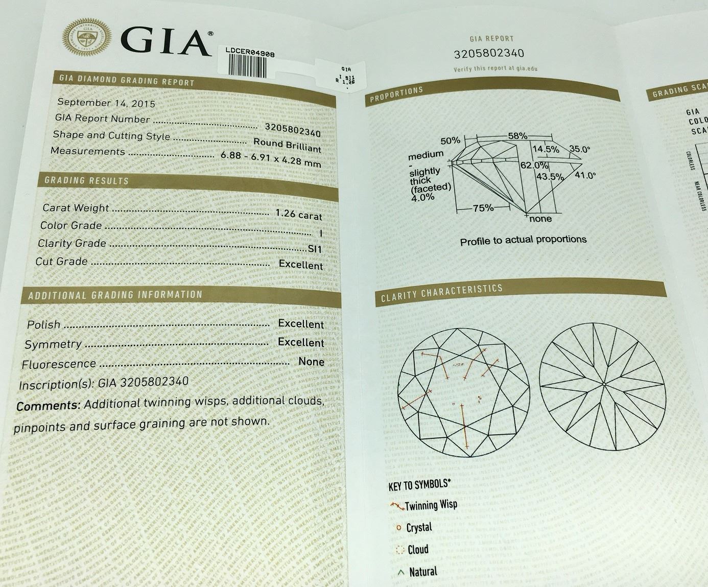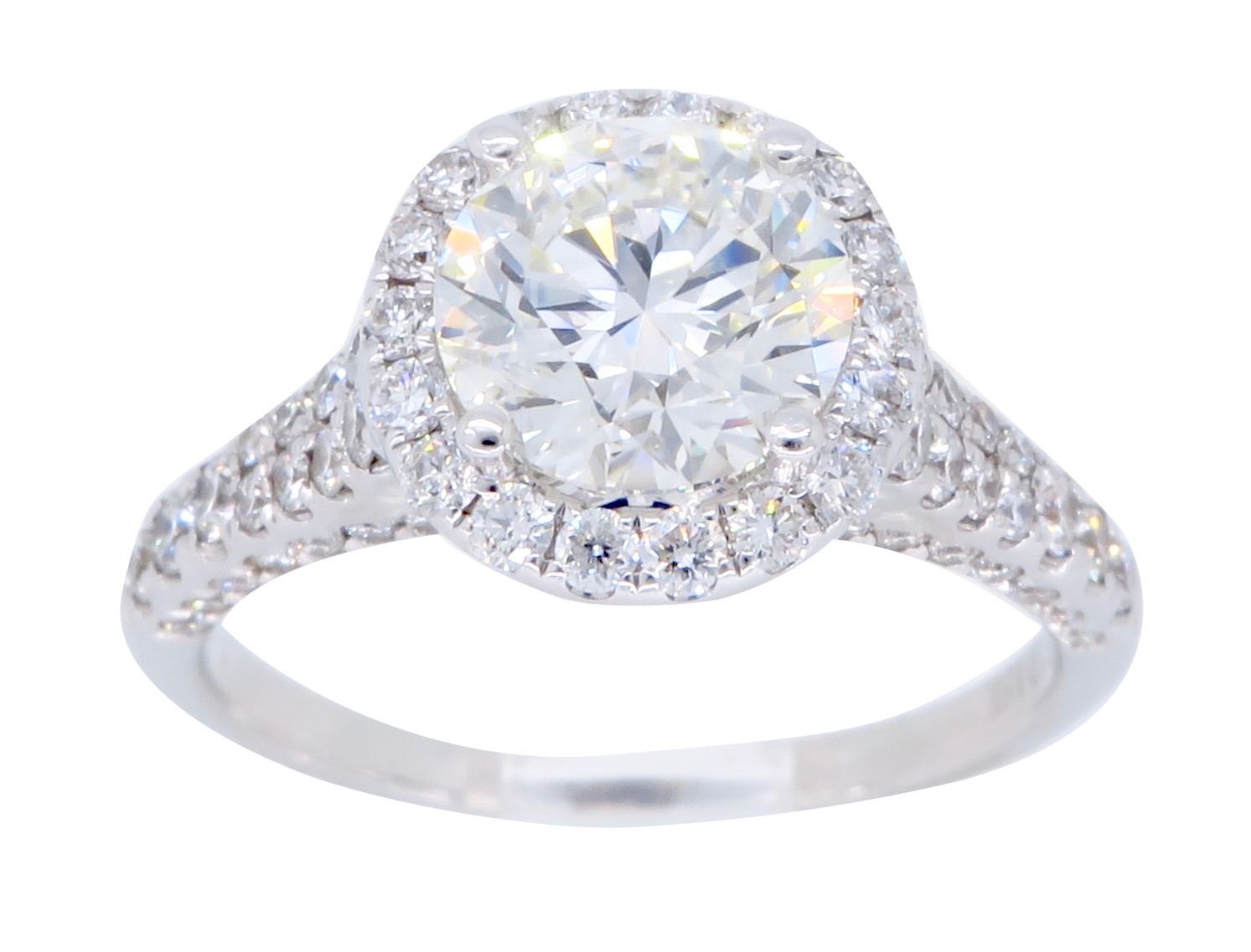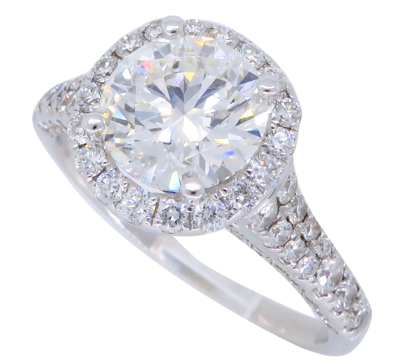 One 18KT White Gold 1.89ctw GIA Cert Diamond Ring. (1) GIA Certified round Diamond with a total weight of 1.26cts with a color of I and clarity of SI-1. Round side Diamonds with a total weight of 0.63cts. Total weight of this ring is 3.8 grams.