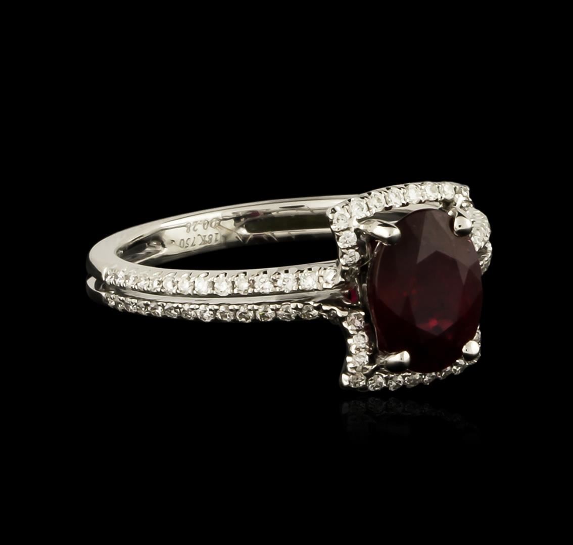 One ring featuring: 18KT white gold weighing 3.6 grams containing one oval cut ruby center weighing 1.92ct and round diamonds weighing a total of 0.28ct.