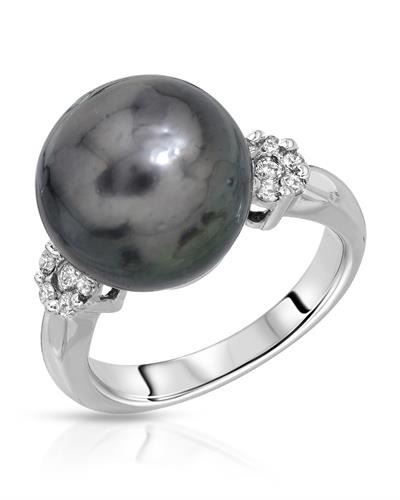 One 18KT White Gold 13.36ct Tahitian Pearl and Diamond Ring. (1) Tahitian Pearl with a total weight of 13.36cts. (14) Diamonds with a total weight of 0.22cts with a color of I and clarity of I-1. Total weight of this ring is 4.69 grams.
