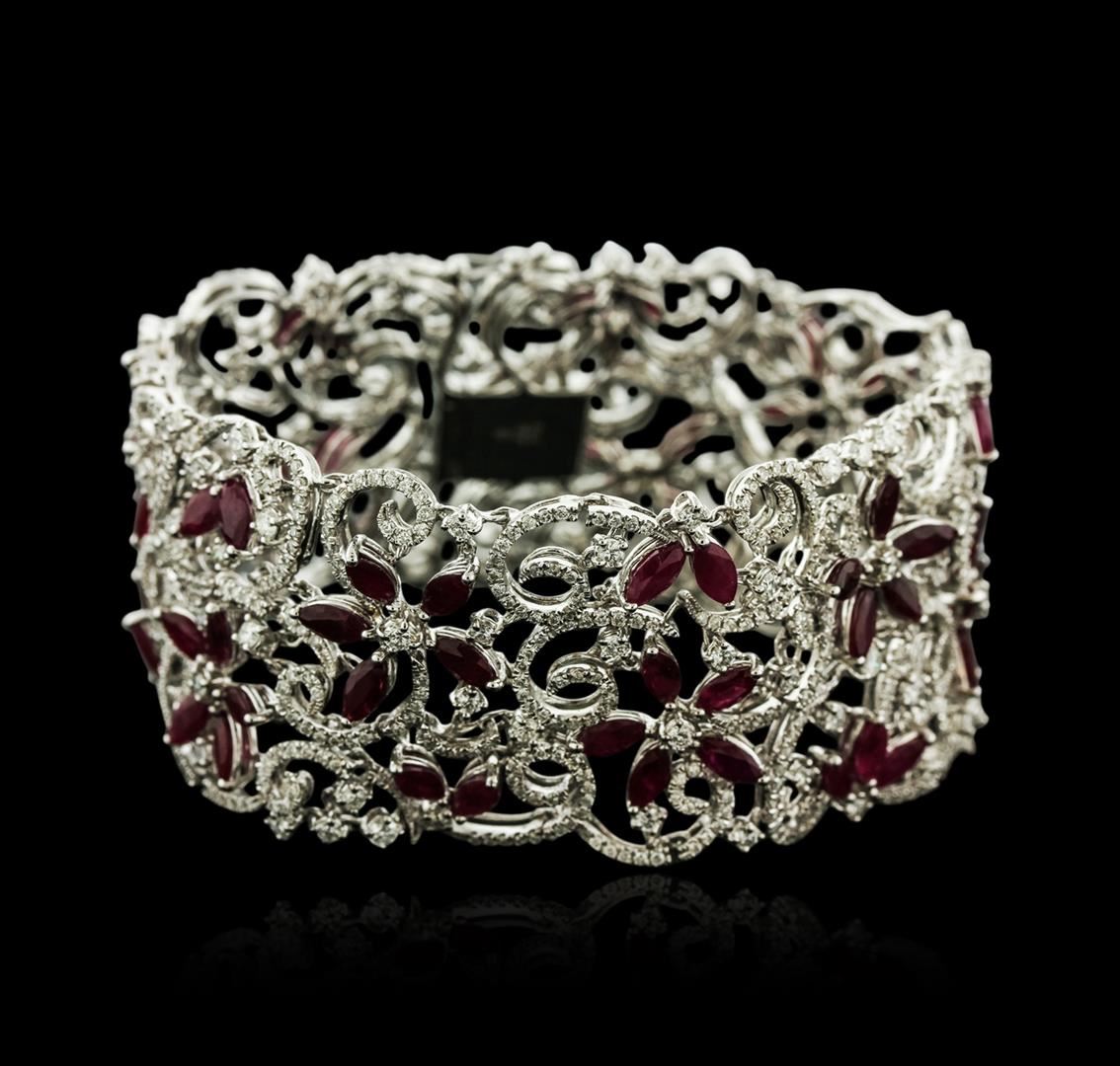 One bracelet featuring: 18KT white gold weighing 61.80 grams containing rubies weighing a total of 16.51 carats and diamonds weighing a total of 8.77 carats.