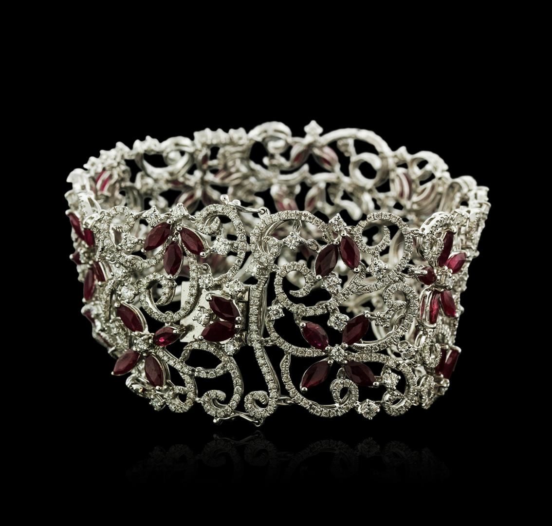 One bracelet featuring: 18KT white gold weighing 61.80 grams containing rubies weighing a total of 16.51 carats and diamonds weighing a total of 8.77 carats.