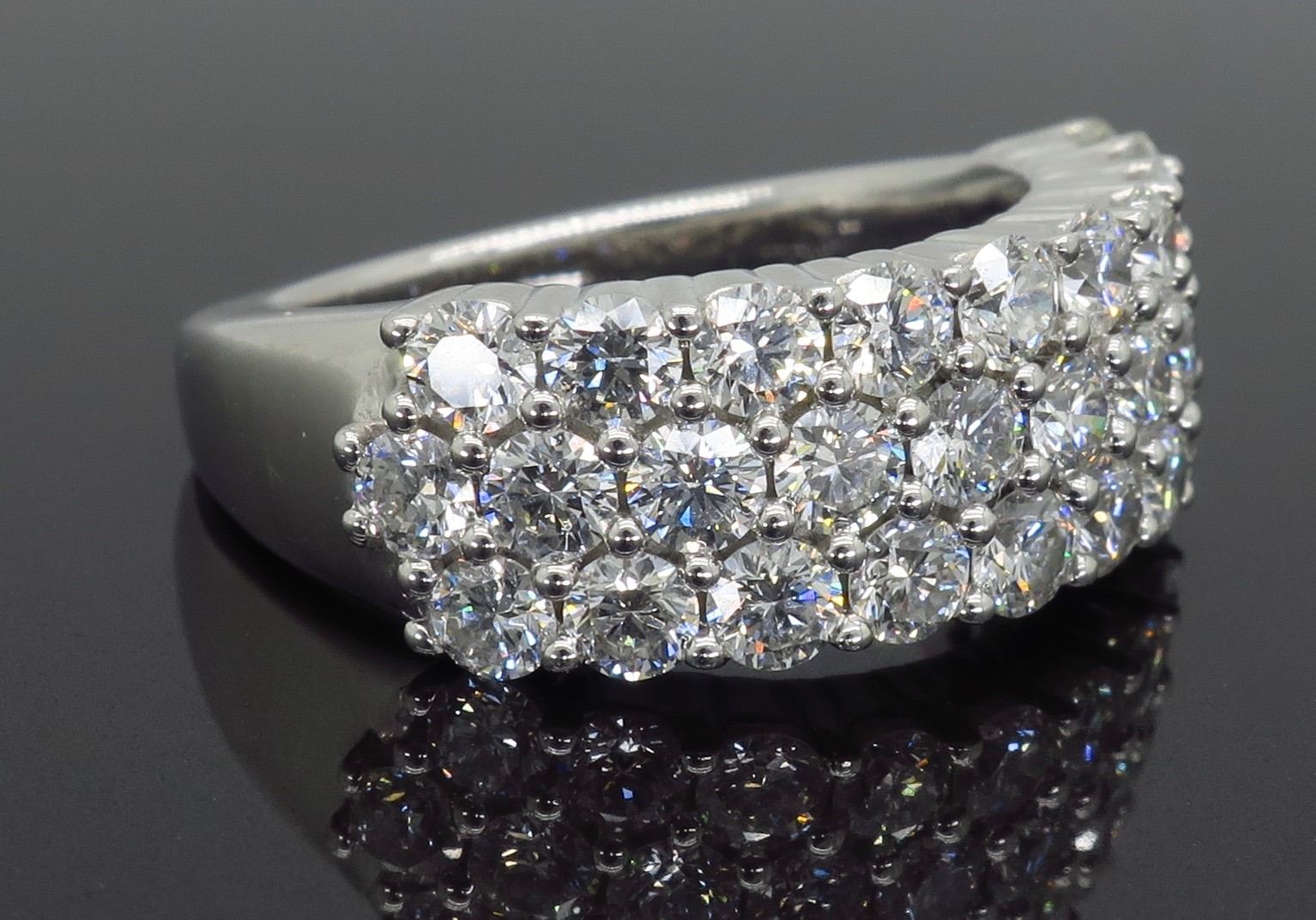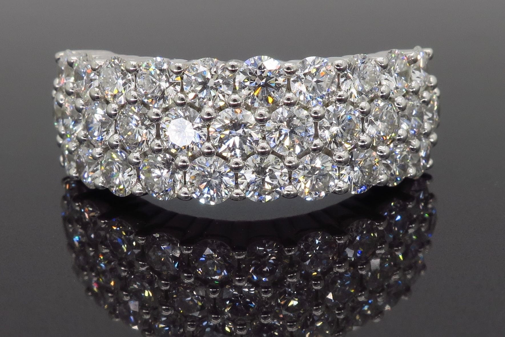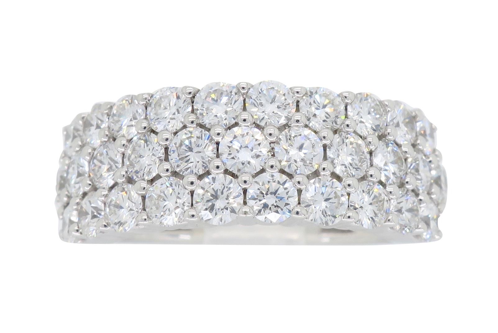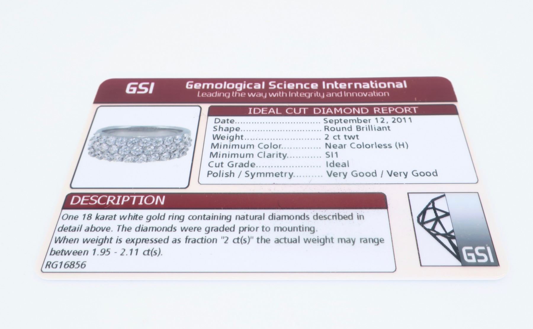 One 18KT White Gold 2.00ctw Diamond Ring. Round Diamonds with a total weight of 2.00cts with a color of H and clarity of SI-1. Total weight of this ring is 8.3 grams. Ring size is 4.75.