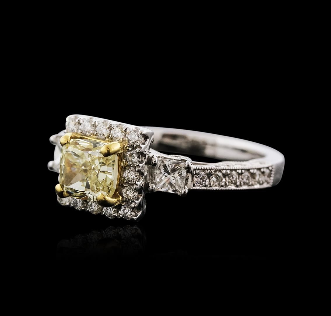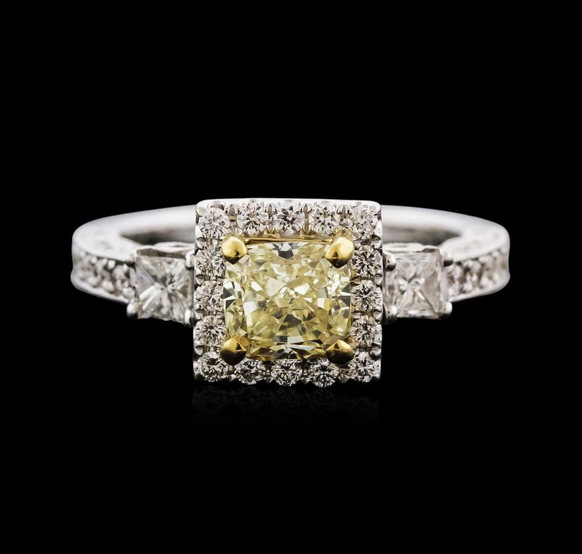 One ring featuring: 18KT white gold weighing 5.55 grams containing one fancy yellow diamond center with a total weight of 1.22ct and 54 round/princess cut diamonds with a total weight of 0.84ct.