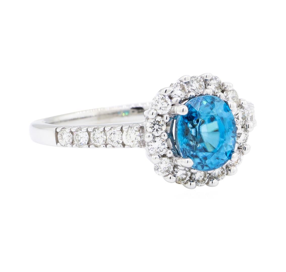 One ring featuring: 18KT white gold weighing 4.3 grams containing one blue zircon weighing 2.09ct and diamonds weighing 0.60ctw. The ring is a size 7.