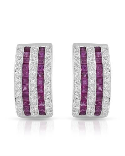 One 18KT White Gold 2.14ctw Ruby and Diamond Earrings. (44) Rubies with a total weight of 2.14cts. (66) Round Diamonds with a total weight of 0.80cts with a color of H and clarity of SI-2. Total weight of these earrings are 11.05 grams.