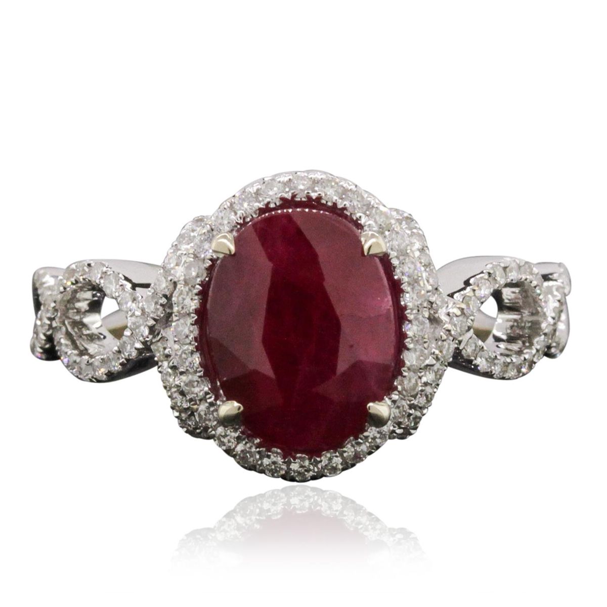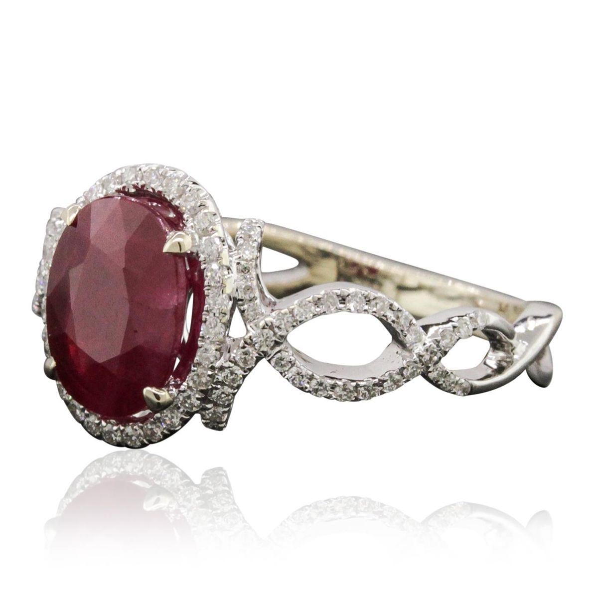 One ring featuring: 18KT White Gold with a total weight of 4.20 grams, diamonds with a total weight of 0.34ctw, and one center ruby with a total weight of 2.26ct.