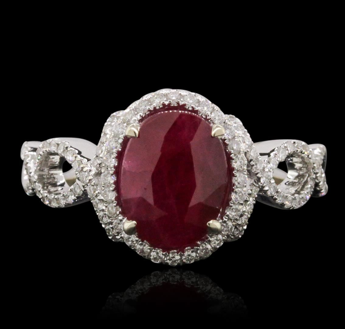 One ring featuring: 18KT White Gold with a total weight of 4.20 grams, diamonds with a total weight of 0.34ctw, and one center ruby with a total weight of 2.26ct.