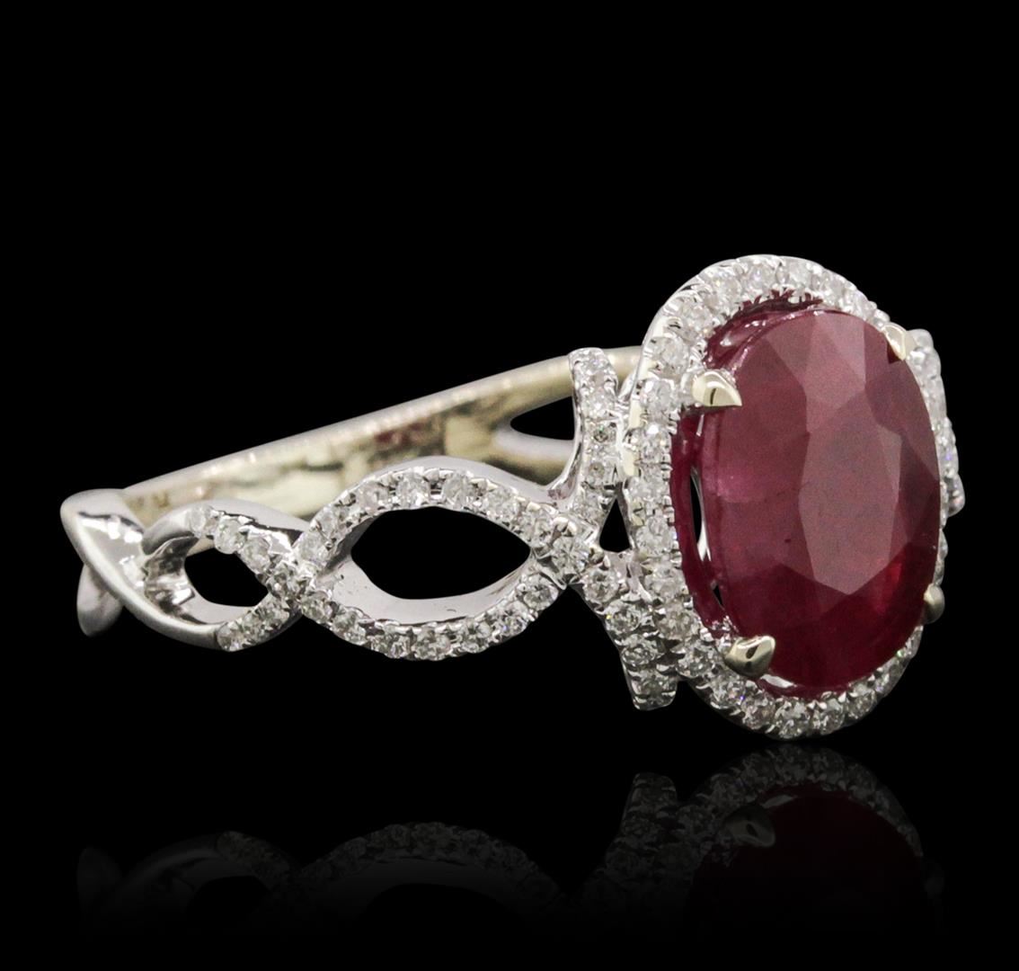One ring featuring: 18KT White Gold with a total weight of 4.20 grams, diamonds with a total weight of 0.34ctw, and one center ruby with a total weight of 2.26ct.