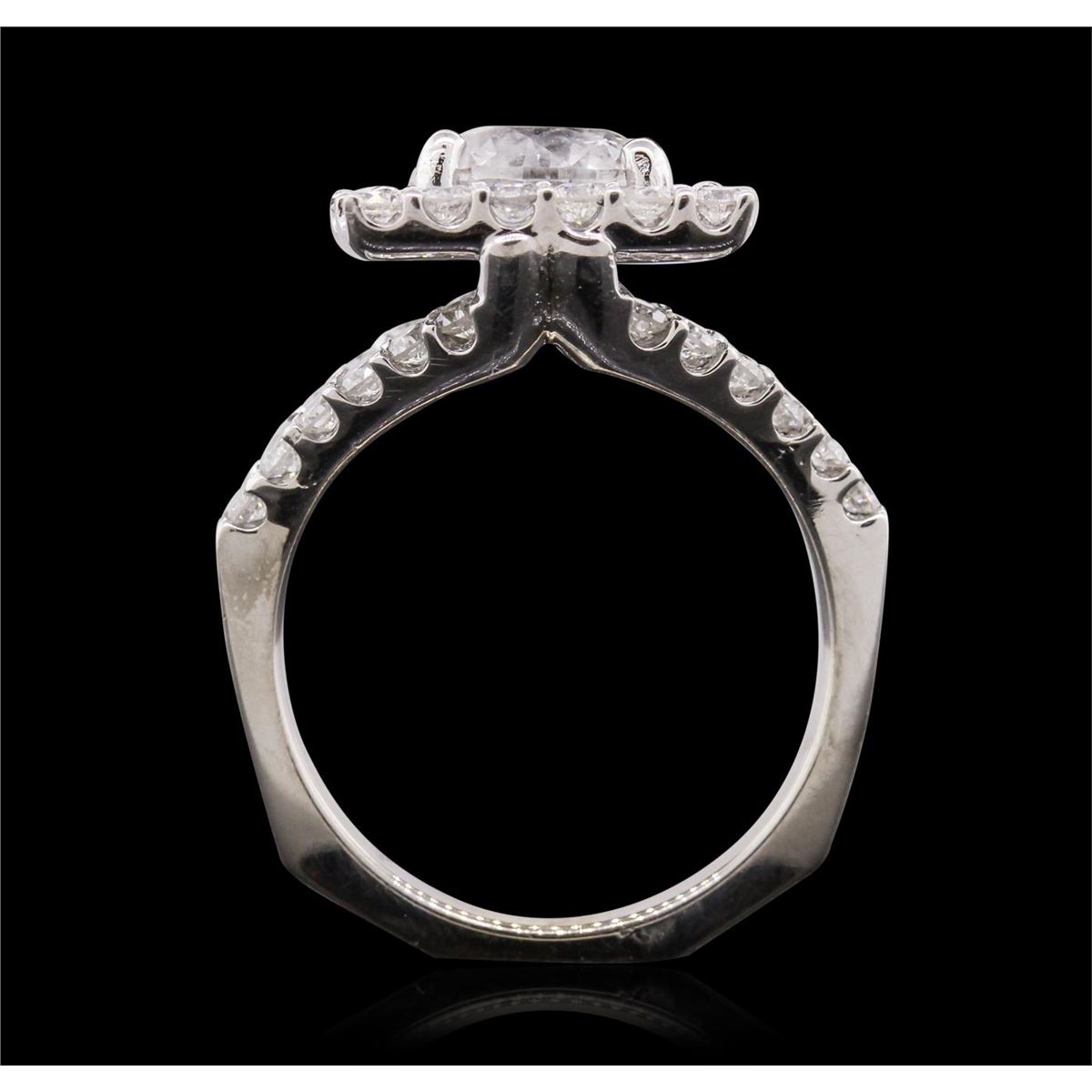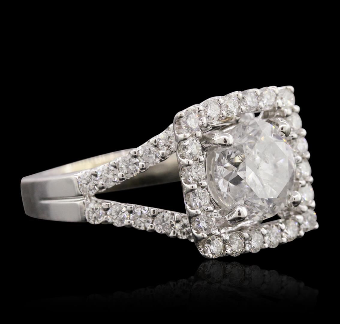 One electronically tested 18KT white gold Ladies combination cast & assembled engagement ring with a bright polish finish. Condition is new. Identified with markings of "18K". Containing: One prong set round brilliant cut diamond, measuring 7.90 - 7.90 x 5.10mm (depth est.) approximate weight of 2.01ct. Clarity: I-2. Color: H, Cut is Good. Forty-Four prong set round brilliant cut diamonds, measuring 1.50 - 1.50 x 0.90mm (depth est.) approximate. Total Weight of 44 Stones = 0.54ct. Clarity: I-1 to I-2. Color: I - J, Cut is Good. Total Weight of Diamonds 2.55ct. Total Weight of Engagement Ring 7.40 grams. GGL Appraised at $25,780.00.