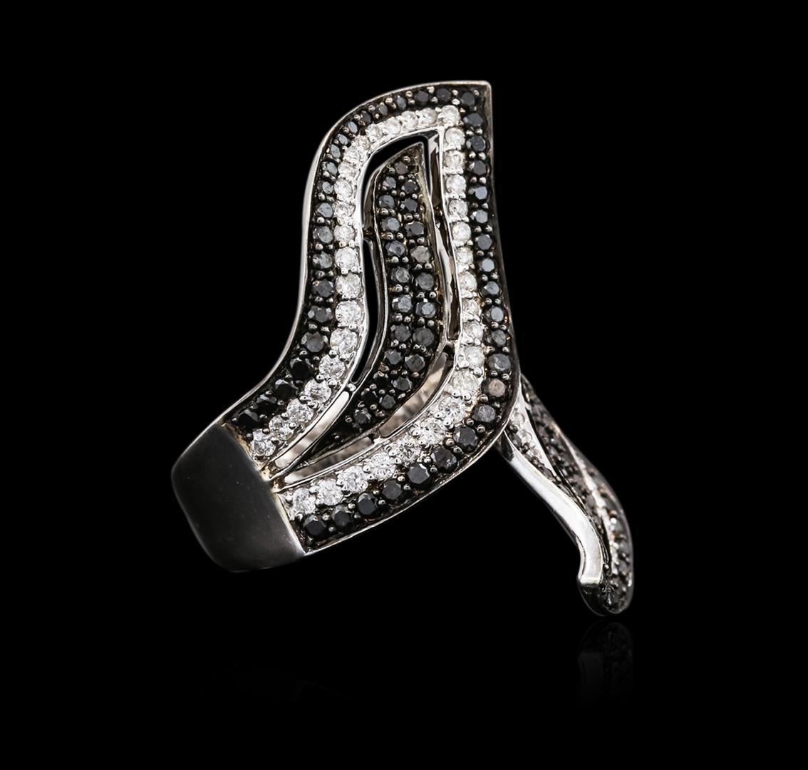 One ring featuring: 18KT white gold weighing 8.40 grams containing round black and white diamonds with a total weight of 2.60ct.