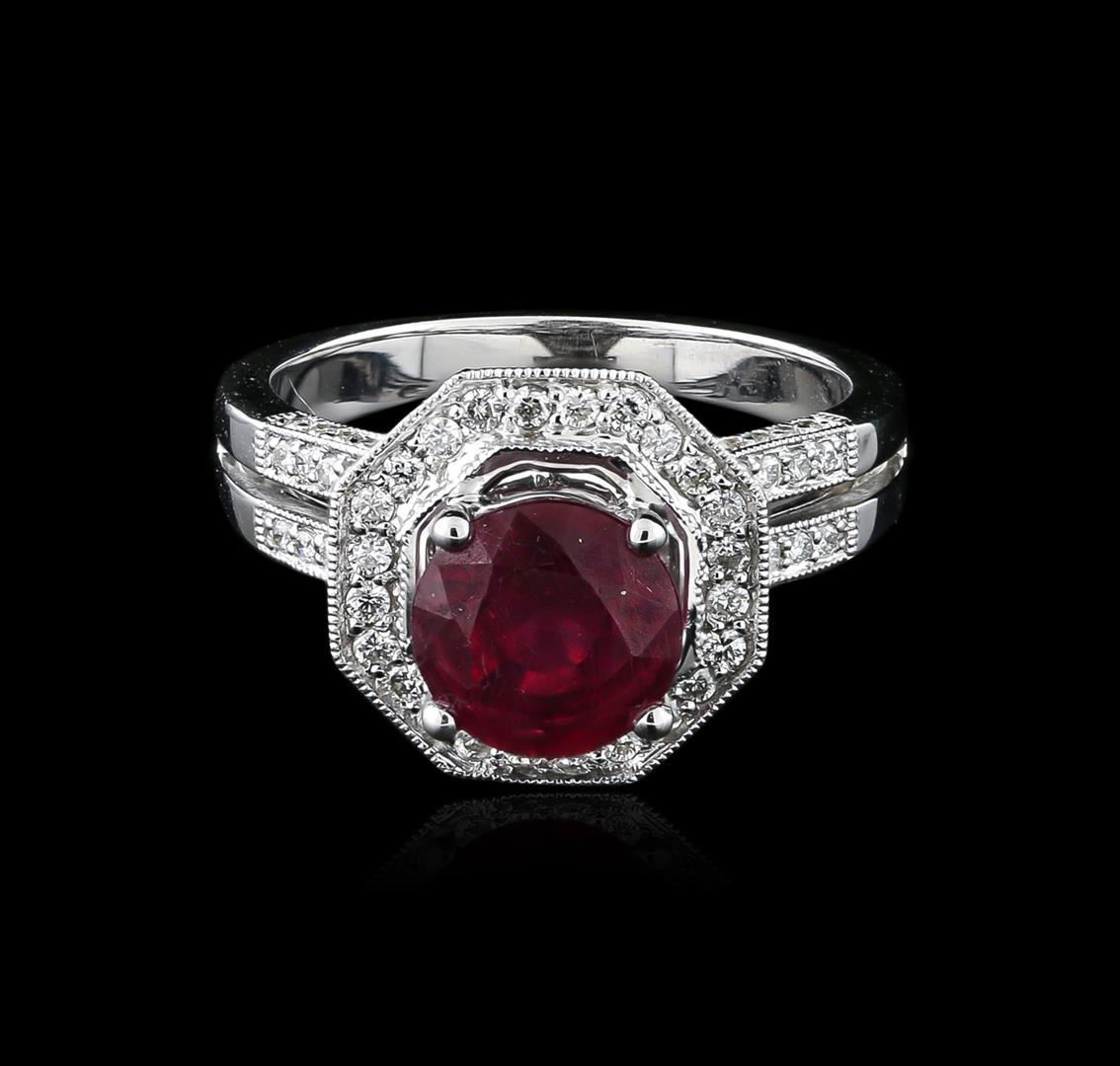 One ring featuring: 18KT white gold weighing 6.58 grams containing one ruby center stone with a total weight of 2.87ct and diamonds with a total weight of 0.64ct.