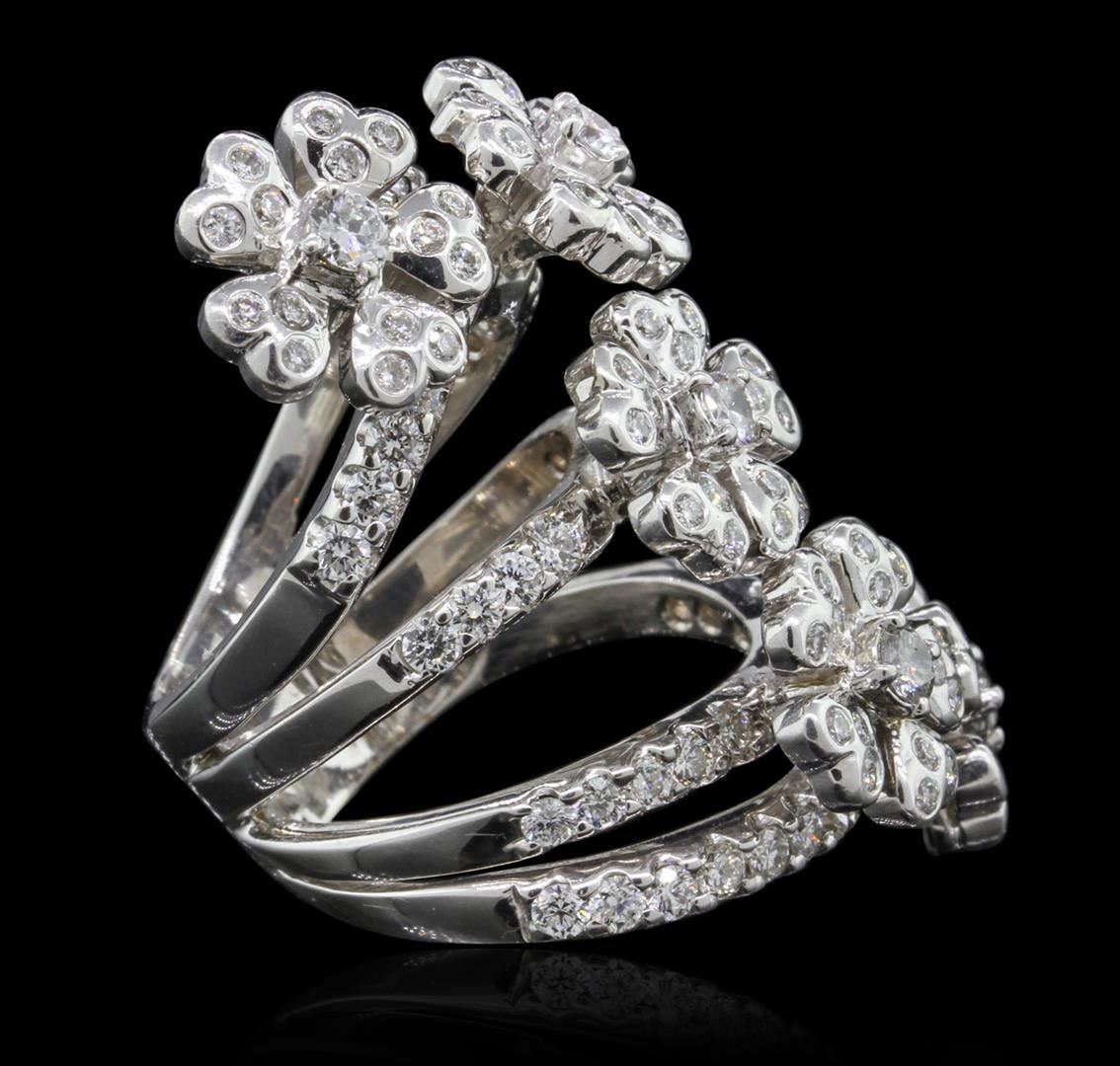 One electronically tested 18KT white gold Ladies combination cast & assembled fashion ring with a bright polish finish. Condition is new. Containing: Five prong set round brilliant cut diamonds, measuring 3.00 - 3.00 x 1.80mm (depth est.) approximate total weight of 5 Stones = 0.49ct. Clarity of SI-1 to SI-2, Color of H - I, Cut is Good. Seventy-Five bezel set round brilliant cut diamonds, measuring 1.50 - 1.50 x 0.90mm (depth est.) approximate total weight of 75 Stones = 0.92ct. Clarity of SI-1 to SI-2, Color of I - J, Cut is Good. Forty-Eight prong set round brilliant cut diamonds, measuring 2.10 - 2.10 x 1.26mm (depth est.) approximate total weight of 48 Stones = 1.63ct. Clarity of SI-1 to SI-2, Color of H - I, Cut is Good. Total Weight of Diamonds 3.04ct. Total Weight of Ring 25.10gm. GGL Appraised at $25,210.00.