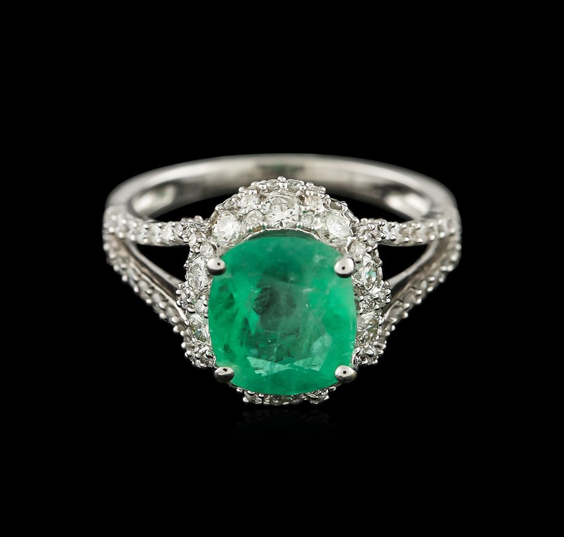 One ring featuring: 18KT white gold weighing 4.60 grams containing one emerald center stone with a total weight of 3.06ct and round diamonds with a total weight of 1.17ct.