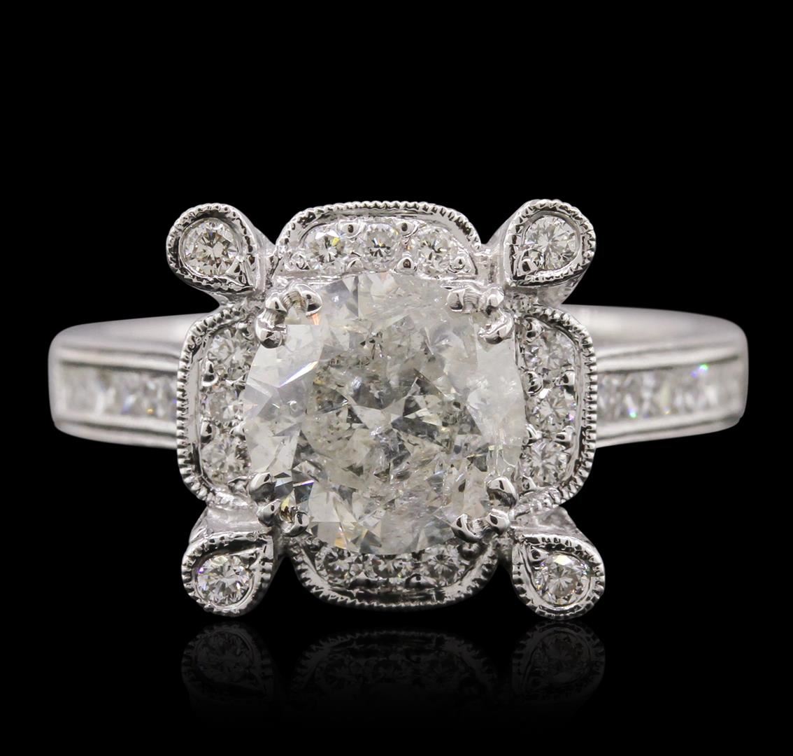 One electronically tested 18KT white gold Ladies combination cast & assembled engagement ring with a bright polish finish. Condition is new. Identified with markings of "18K". Containing: One prong set round brilliant cut diamond, measuring 8.00 - 8.00 x 5.20mm (depth est.) approximate weight of 2.03ct. Clarity: I-3. Color: J, Cut is Good. Fourteen channel set princess cut diamonds, measuring 1.70 x 1.70 x 1.28mm (depth est.) approximate. Total Weight of 14 Stones = 0.42ct. Clarity: SI-1 to SI-2. Color: I - J, Cut is Good. Eighty-Four bead set round brilliant cut diamonds, measuring 1.30 - 1.30 x 0.78mm (depth est.) approximate. Total Weight of 84 Stones = 0.67ct. Clarity: SI-1 to I-1. Color: I - J, Cut is Good. Total Weight of Diamonds 3.13ct. Total Weight of Engagement Ring 6.50 grams. GGL Appraised at $22,690.00.