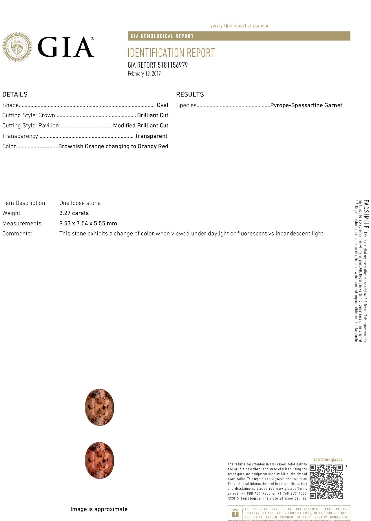 One 18KT White Gold 3.27ct GIA Cert Color Changing Garnet and Diamond Ring. (1) GIA Certified color changing Garnet with a total weight of 3.27cts. (20) diamonds with a total weight of 0.75cts. Total weight of this ring is 7.3 grams.