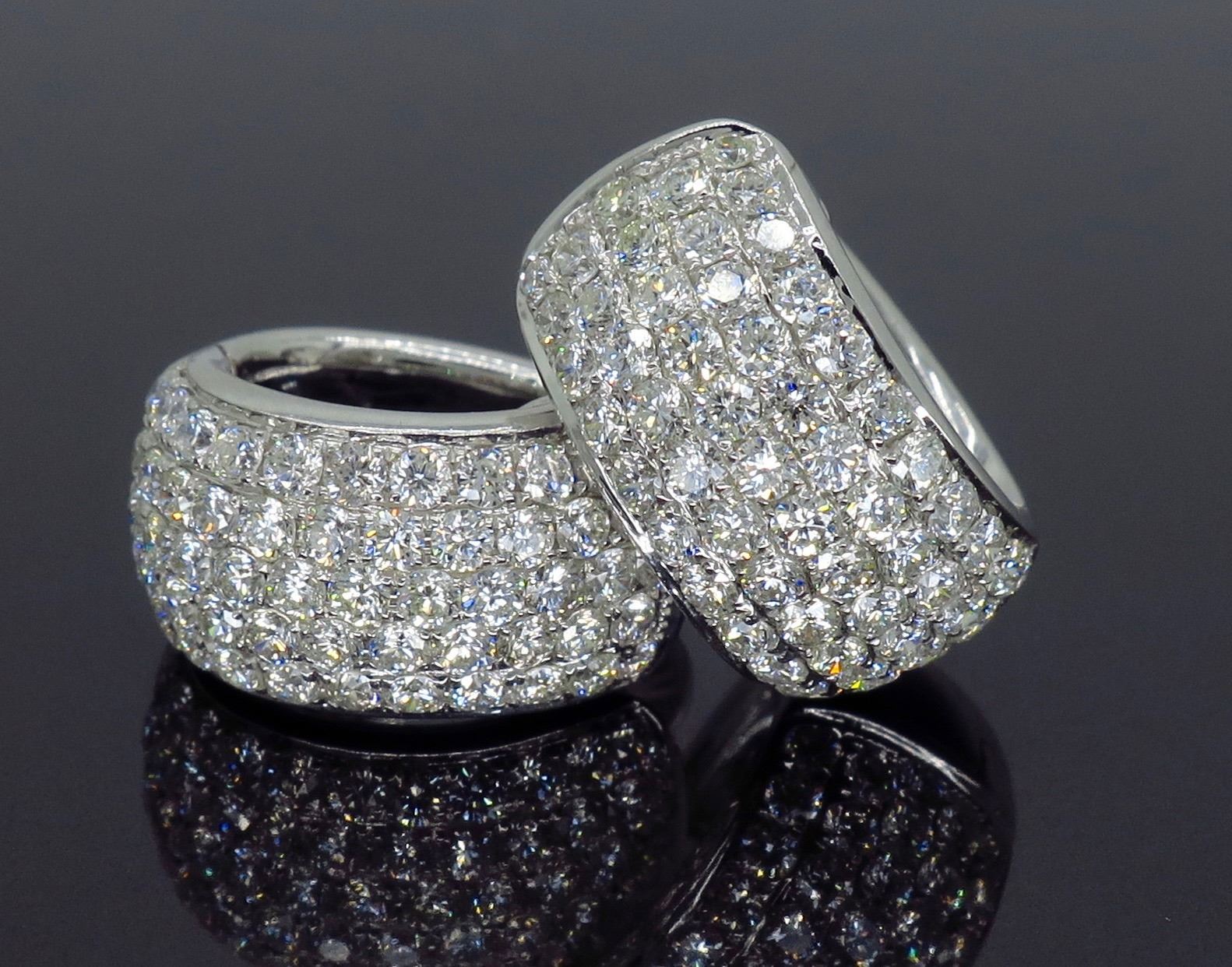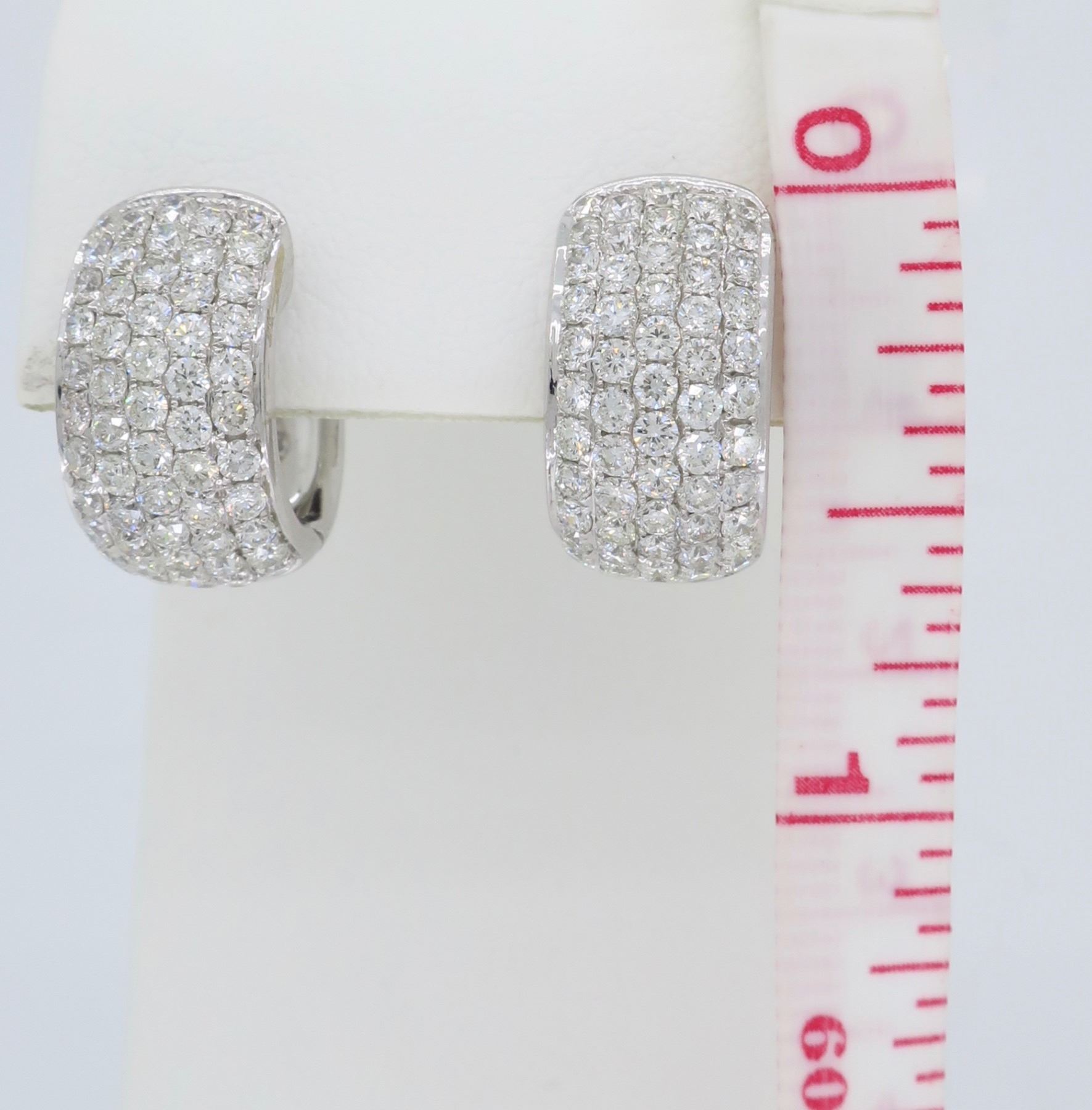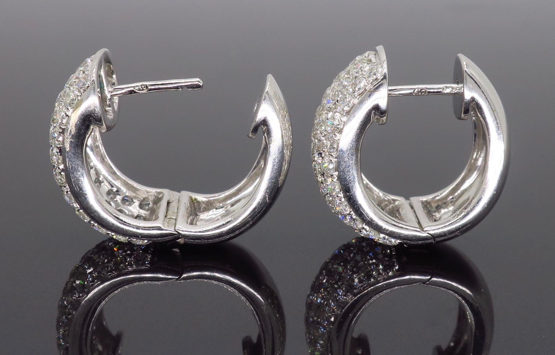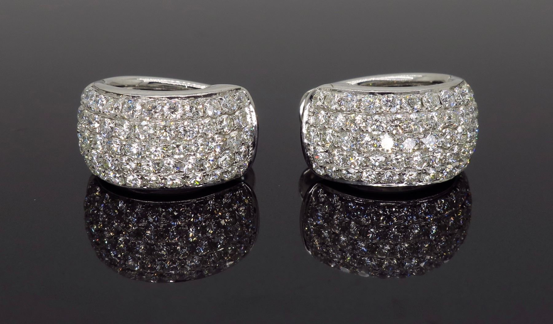 One 18KT White Gold 3.30ctw Diamond Earrings. (112) Round Diamonds with a total weight of 3.30cts with a color of G-I and clarity of VS-2 to SI-2. Total weight of these earrings are 9.4 grams.