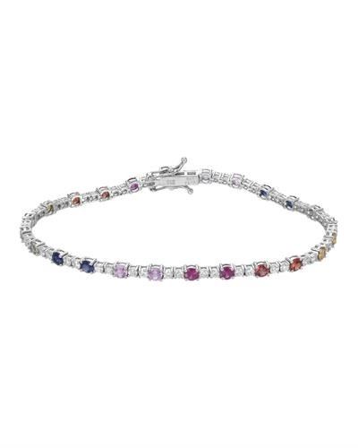 One 18KT White Gold 3.30ctw Multi Color Sapphire and Diamond Bracelet. (24) Multi color stones with a total weight of 3.30cts. (49) round Diamonds with a total weight of 1.72cts with a color of H and clarity of SI-2. Total length of this bracelet is 7 inches. Total weight of this bracelet is 6.59 grams.