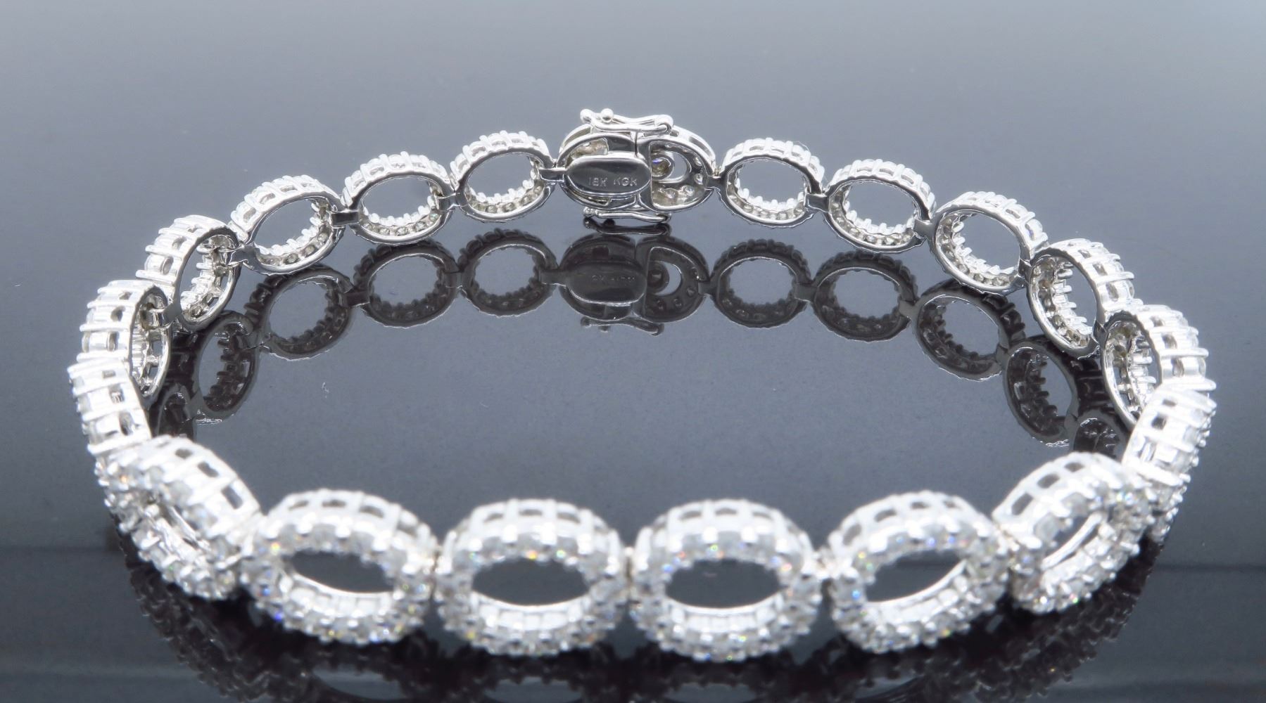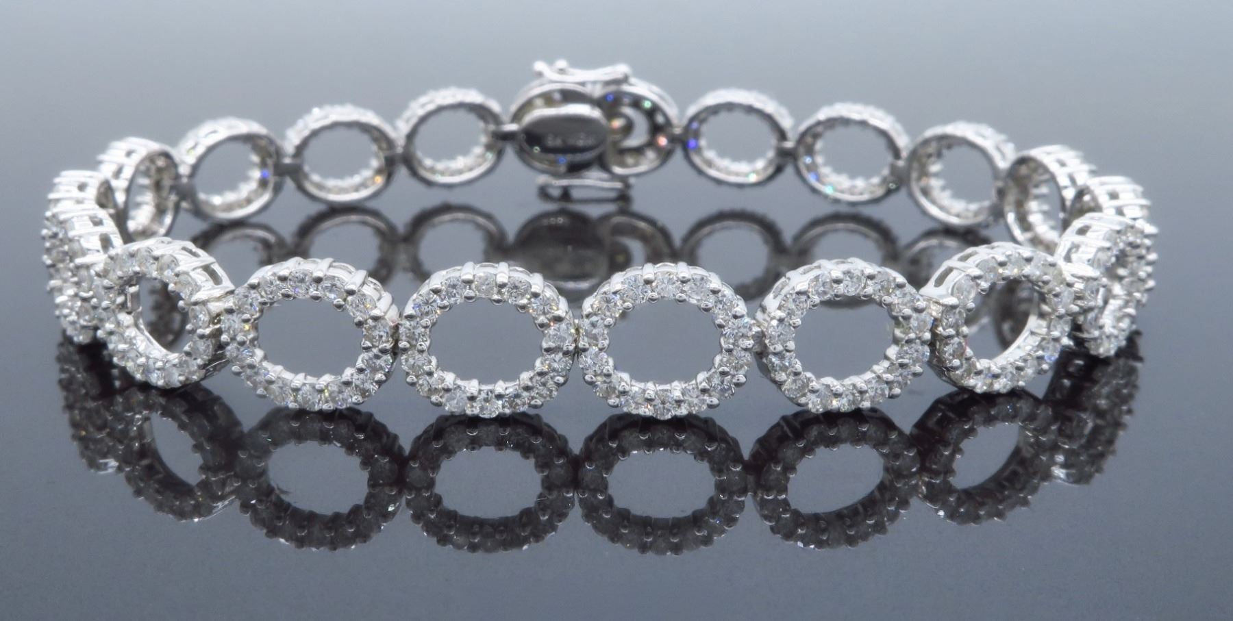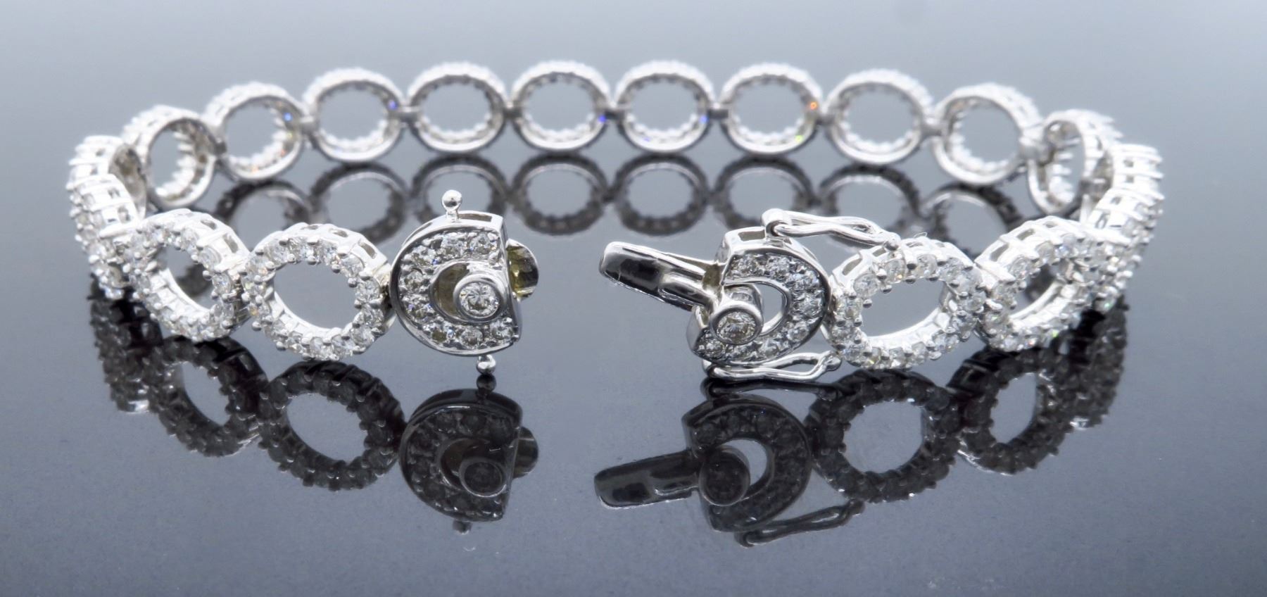 18KT White Gold 4.07ctw Diamond Bracelet. Round Diamonds with a total weight of 4.07cts with a color of G-I and clarity of SI-2 to I-1. Total weight of this bracelet is 14.2 grams. Total length of this bracelet is 6.5 inches.