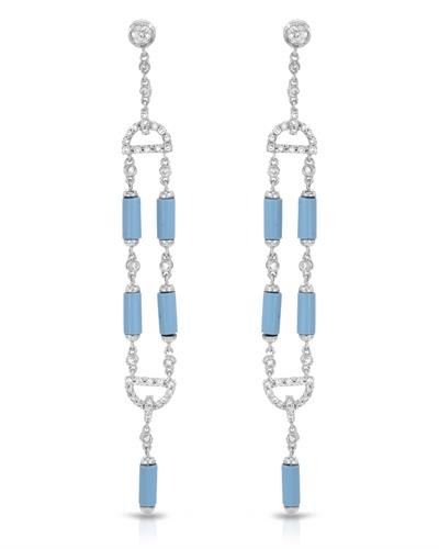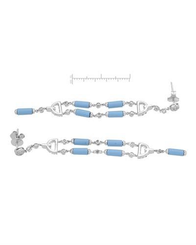 One 18KT White Gold 4.20ctw Turquoise and Diamond Earrings. (10) Turquoise stones with a total weight of 4.20cts. (90) round Diamonds with a total weight of 0.76cts with a color of I and clarity of I-1. Total weight of these earrings are 6.65 grams.