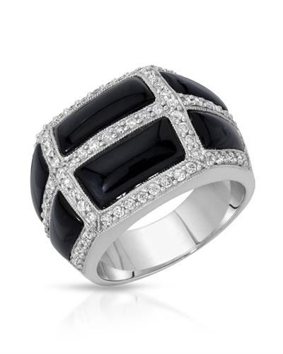 One 18KT White Gold 4.41ctw Onyx and Diamond Ring. (6) Black Onyx stones with a total weight of 4.41cts. (78) Round Diamonds with a total weight of 0.60cts with a color of I and clarity of I-1. Total weight of this ring is 14.14 grams.