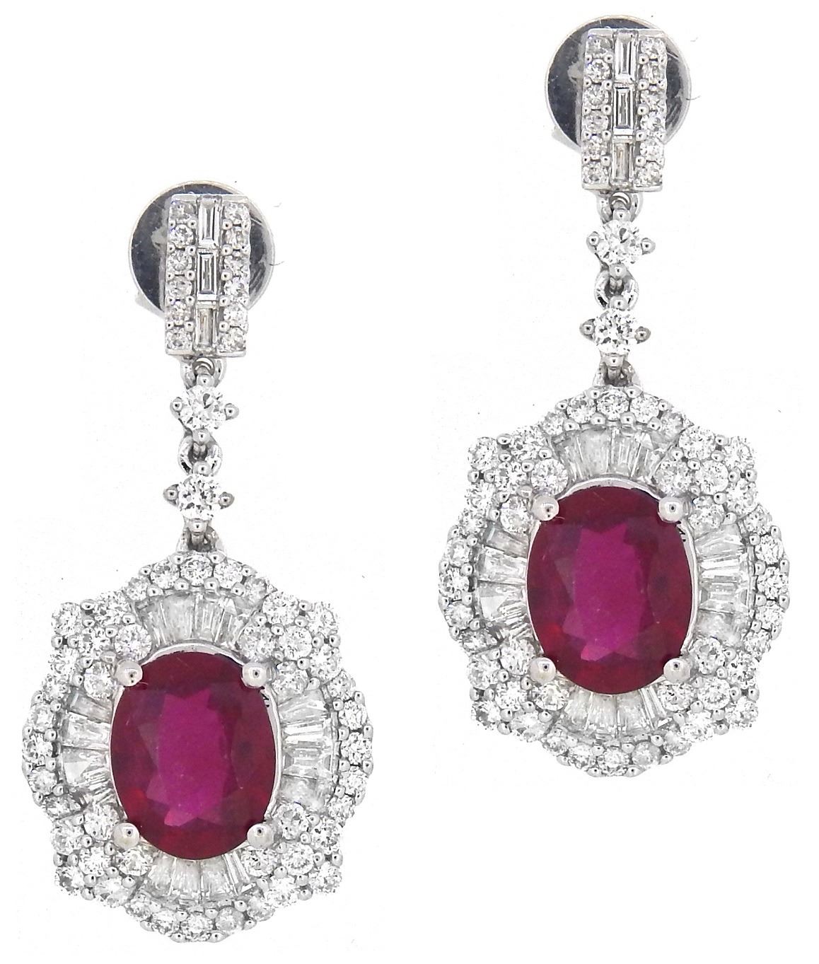 One 18KT White Gold 4.63ctw Ruby and Diamond Earrings. (2) Rubies with a total weight of 4.63cts. (154) diamonds with a total weight of 2.51cts. Total weight of this ring is 8.9 grams.