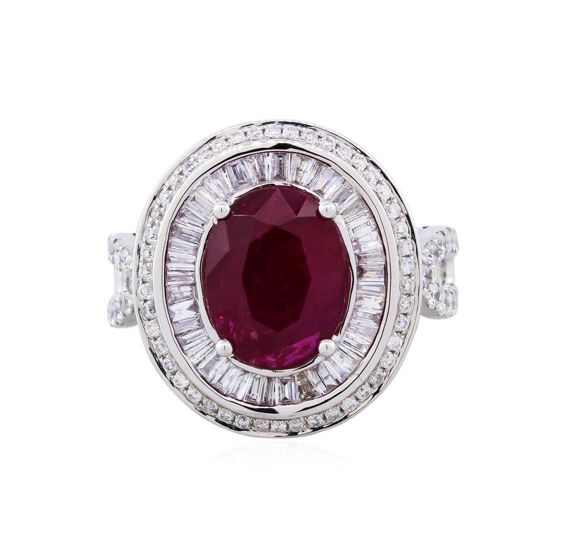 One ring featuring: 18KT white gold weighing 10.50 grams containing one ruby center stone with a total weight of 4.88ct and 127 baguette cut/round diamonds with a total weight of 1.61ct.