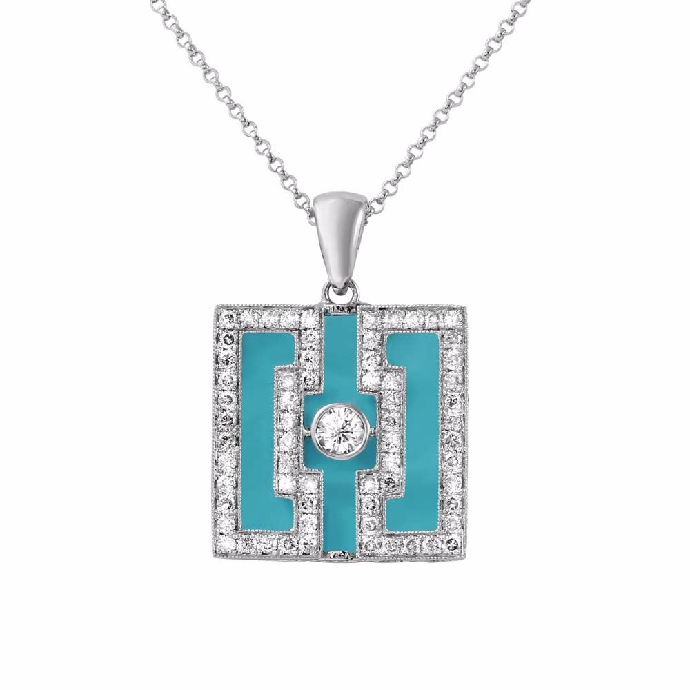 18KT White Gold 6.57ct Turquoise and Diamond Pendant with Chain