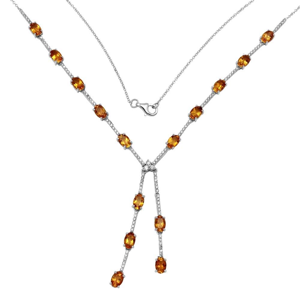 One 18KT White Gold 6.59ctw Citrine and Diamond Necklace. (15) Citrine stones with a total weight of 6.59cts. (111) Diamonds with a total weight of 1.01cts. Total weight of this necklace is 9.86 grams.