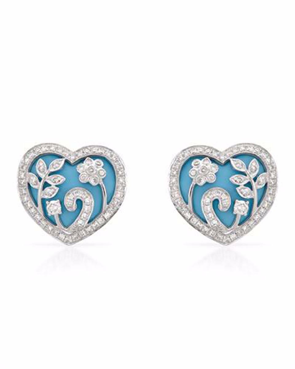 One pair of 18KT White Gold 7.00ctw Turquoise and Diamond Earrings. (2) Turquoise stones with a total weight of 7.00cts. (122) Diamonds with a total weight of 0.79cts. The total weight of these earrings are 7.59 grams.