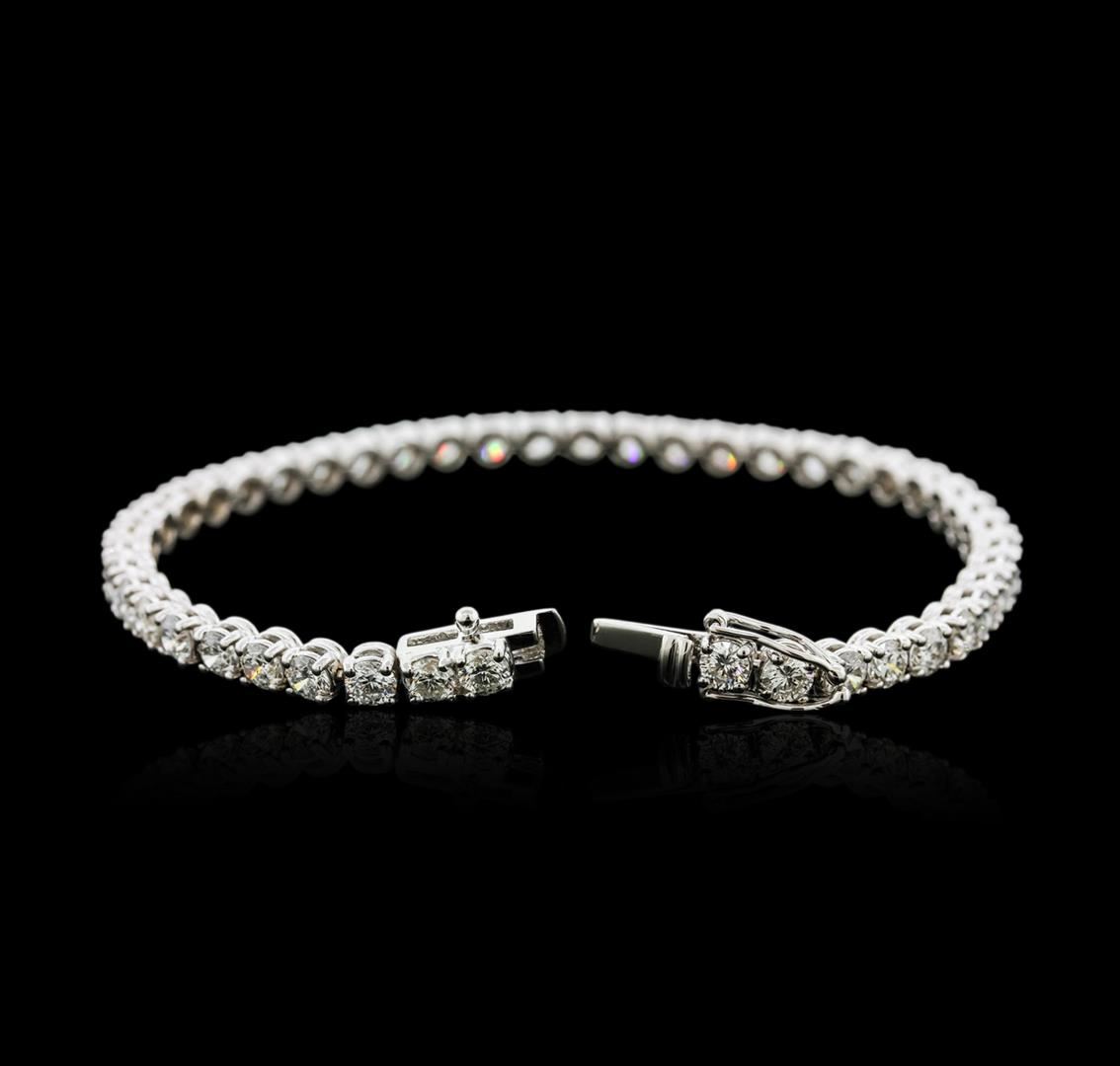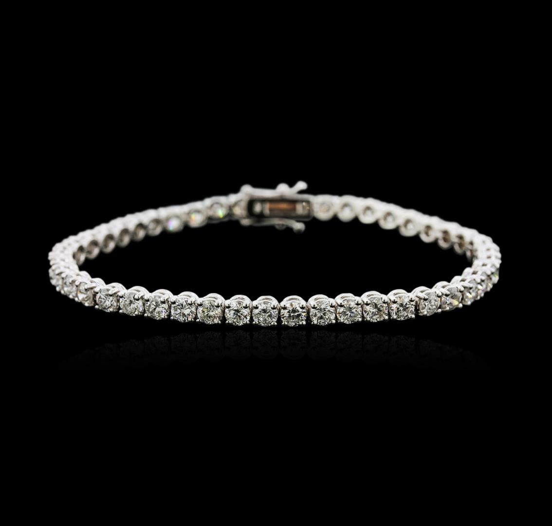 One electronically tested 18KT white gold ladies cast diamond tennis bracelet with a hidden box clasp with safety closer with a bright polish finish. Measurements: 7" in length Identified with markings of "750". Condition is new. Containing: Forty-Five prong set round brilliant cut diamonds, measuring 3.50 - 3.50 x 2.10mm (depth est.) approximate total weight of 45 Stones = 7.06ct. Clarity: SI-2 to I-1. Color: H - I, Cut is Good. All diamonds are graded in the mounting, unless otherwise stated. Total Weight of Diamonds 7.06ct. Total Weight of Tennis Bracelet 15.70 grams. GGL Appraised at $19,920.00.
