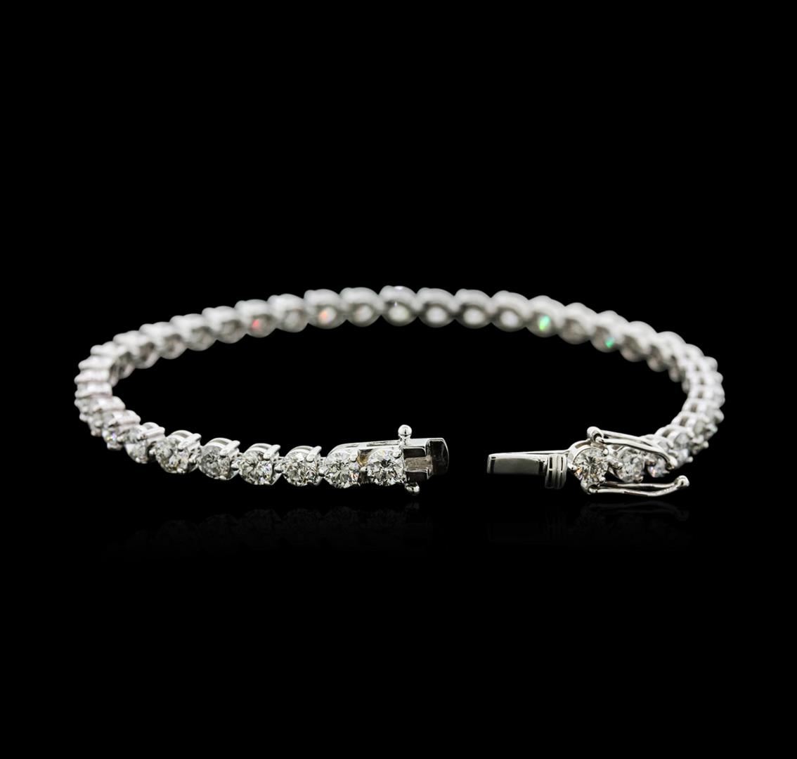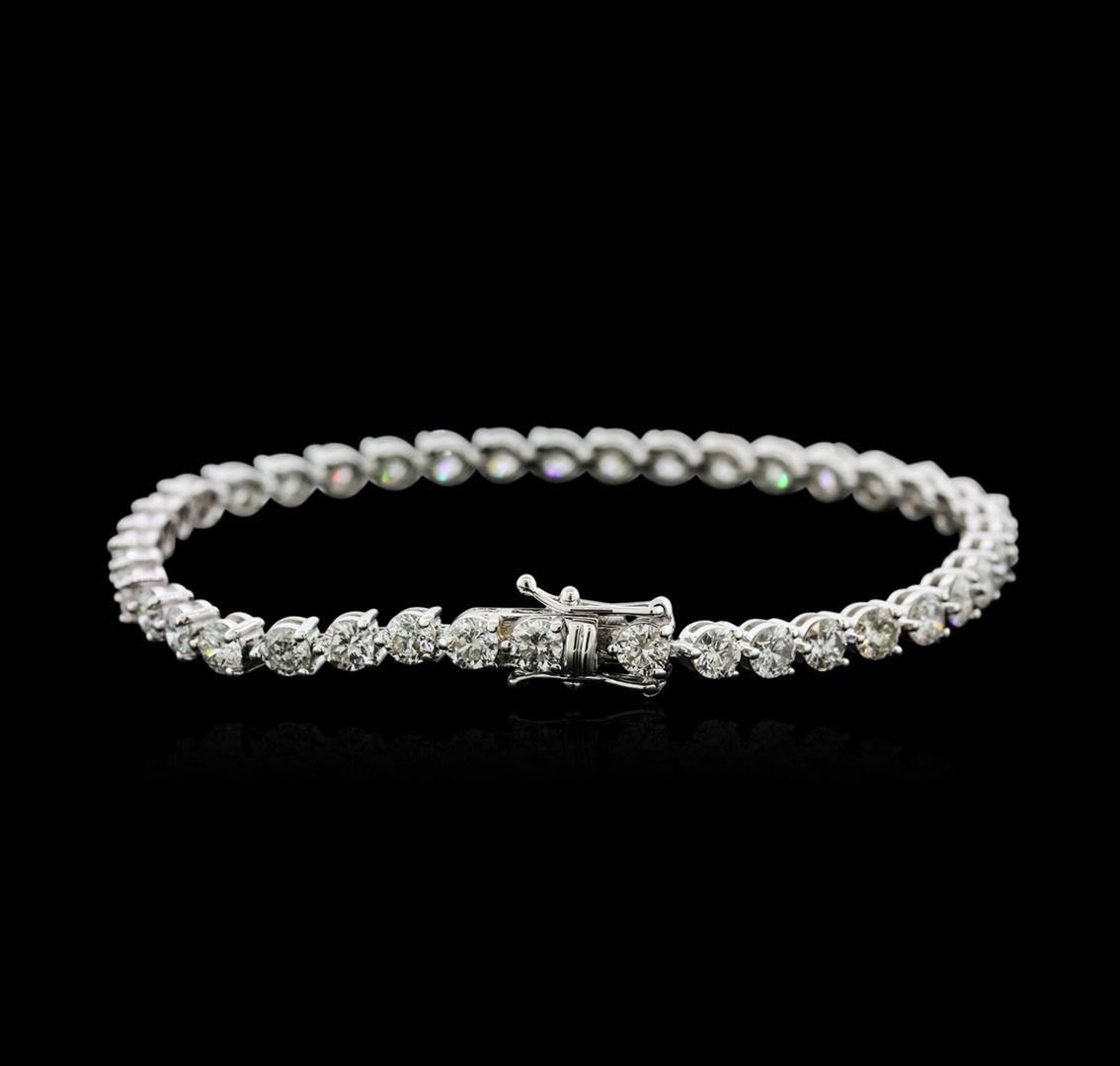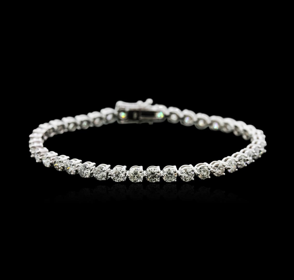 One electronically tested 18KT white gold ladies cast diamond tennis bracelet with a hidden box clasp with safety closer with a bright polish finish. Measurements: 7" in length Identified with markings of "750". Condition is new. Containing: Forty prong set round brilliant cut diamonds, measuring 3.70 - 3.70 x 2.22mm (depth est.) approximate total weight of 40 Stones = 7.41ct. Clarity: SI-1 to I-1. Color: G - I, Cut is Good. All diamonds are graded in the mounting, unless otherwise stated. Total Weight of Diamonds 7.41ct. Total Weight of Tennis Bracelet 12.60 grams. GGL Appraised at $17,820.00.