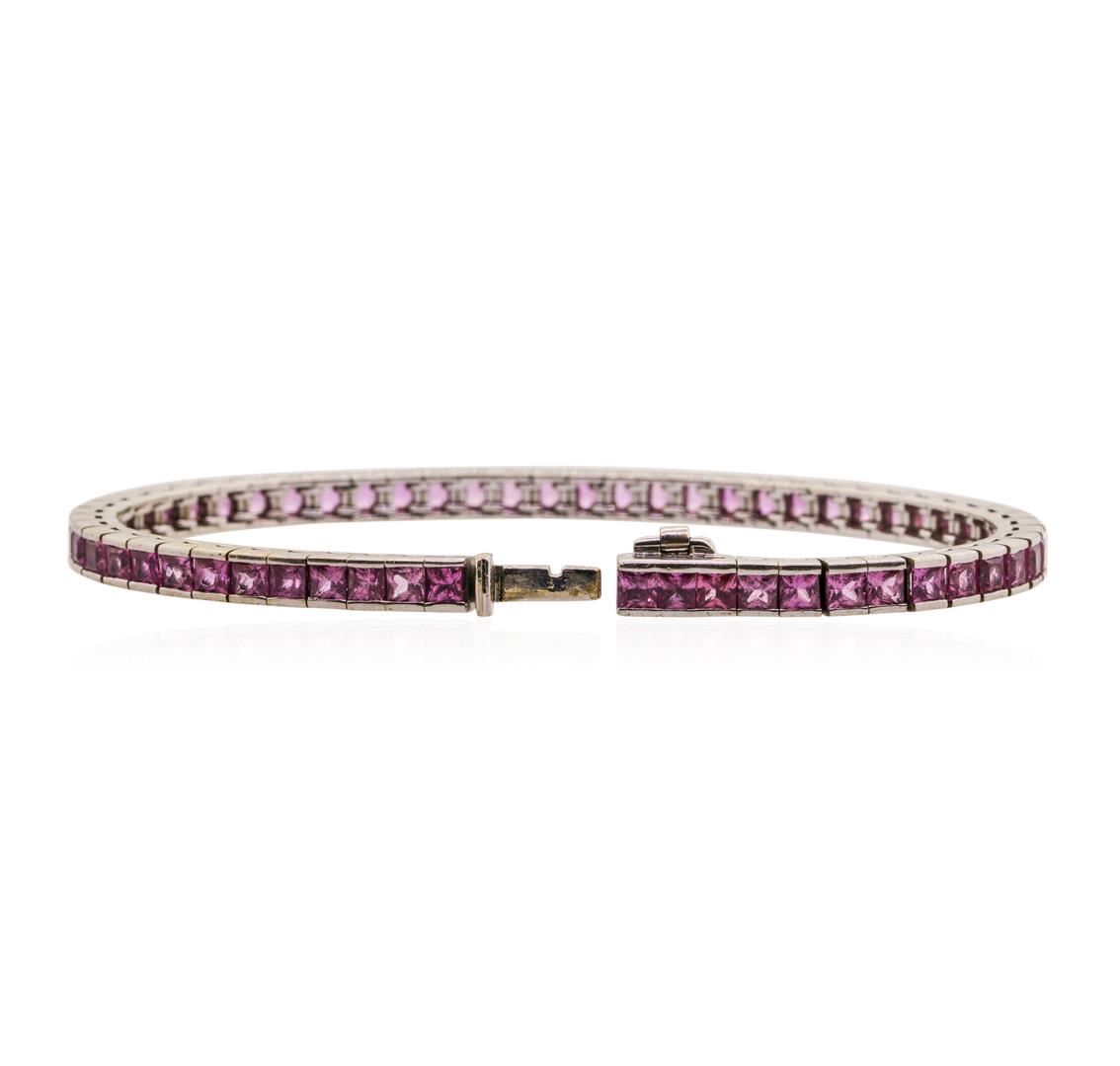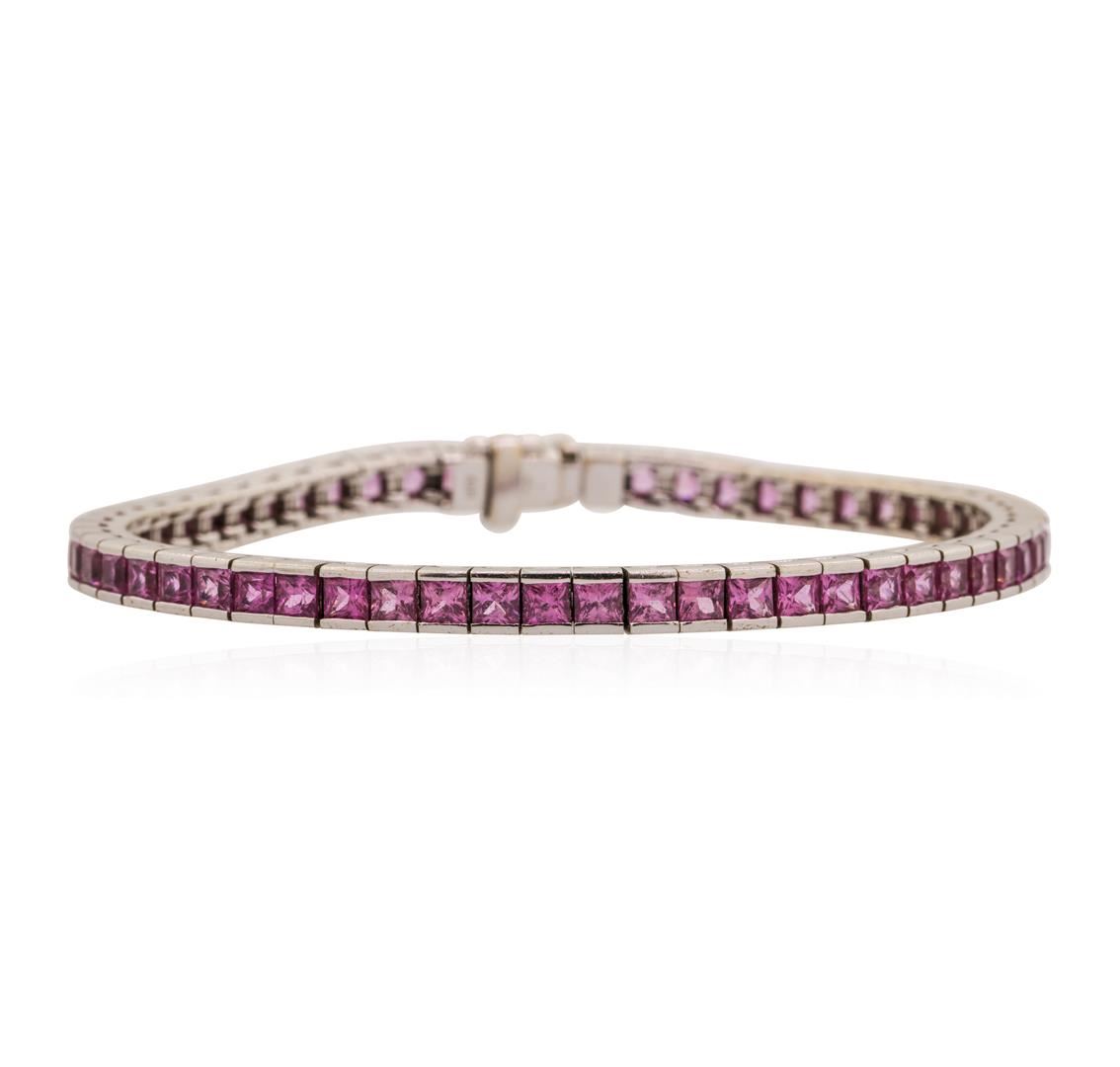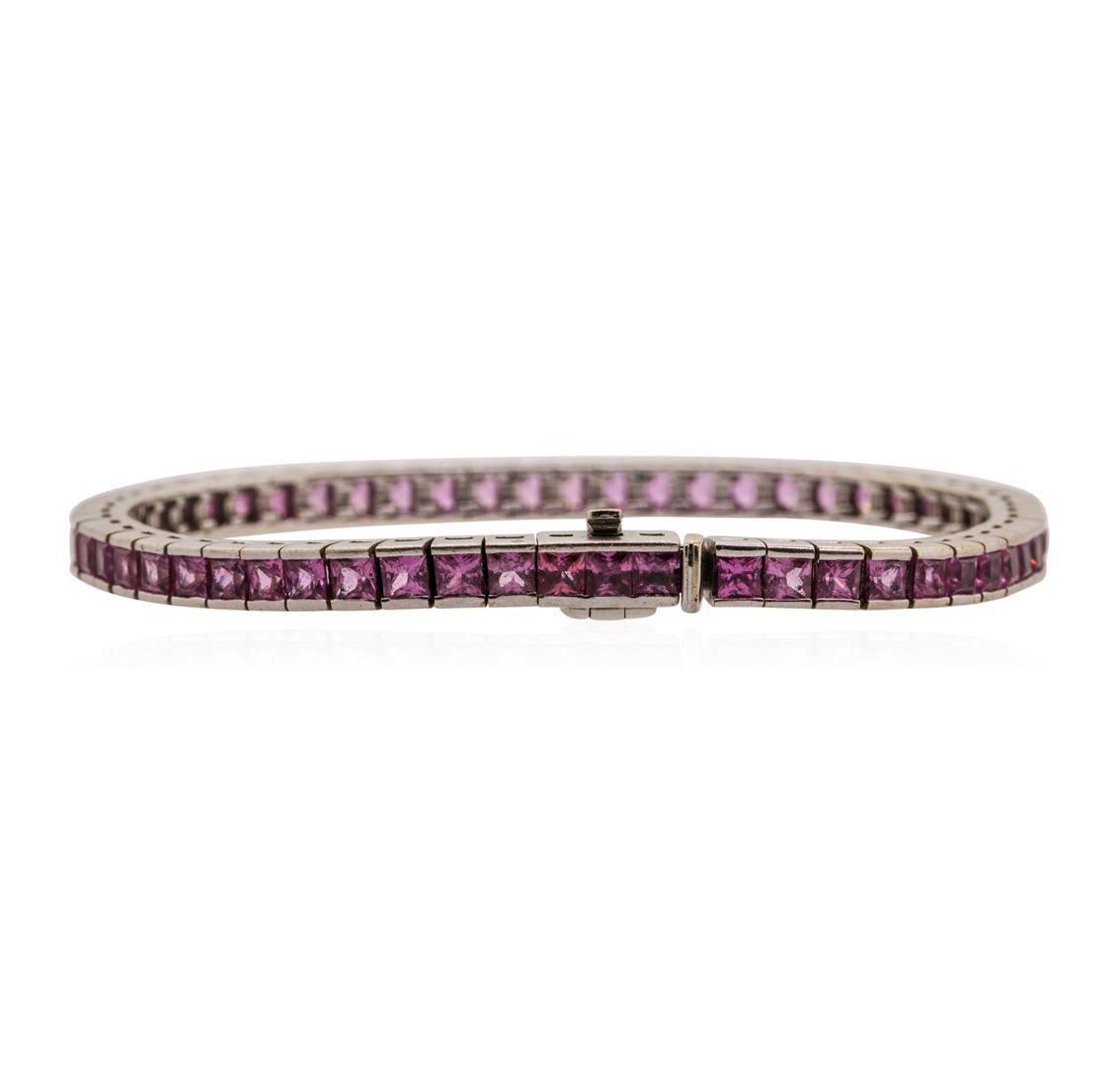 One Bracelet featuring: 18KT White Gold and 58 princess cut Pink Sapphires with a total weight of 7.50cts.