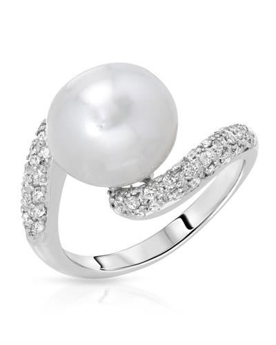 One 18KT White Gold 9.00ct Pearl and Diamond Ring. (1) Pearl with a total weight of 9.00cts. (62) Round Diamonds with a total weight of 0.48cts with a color of I and clarity of I-1. Total weight of this ring is 4.82 grams.