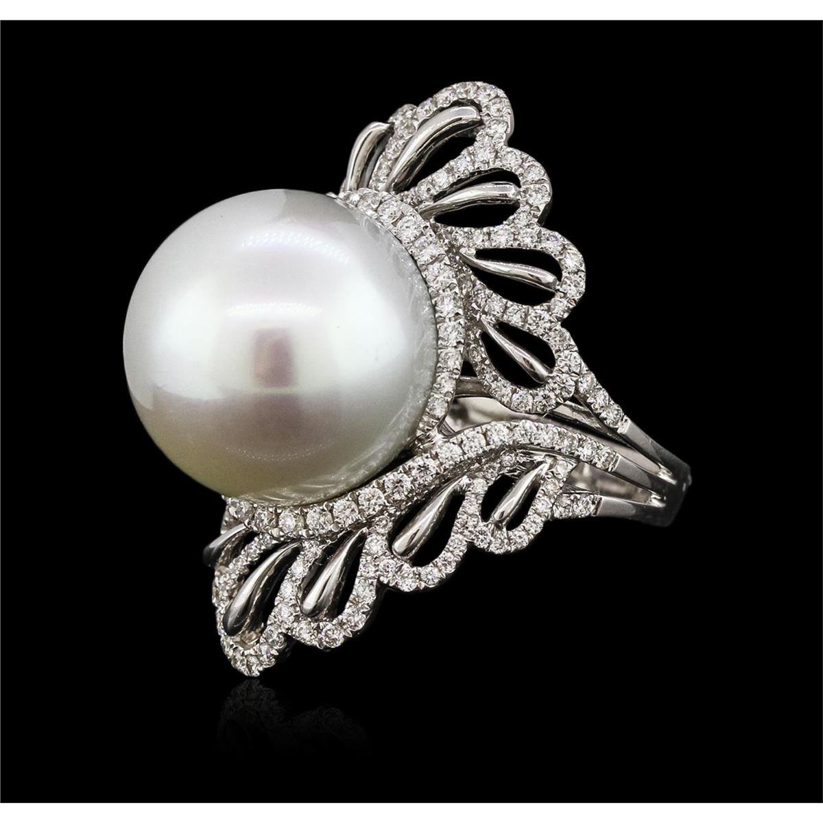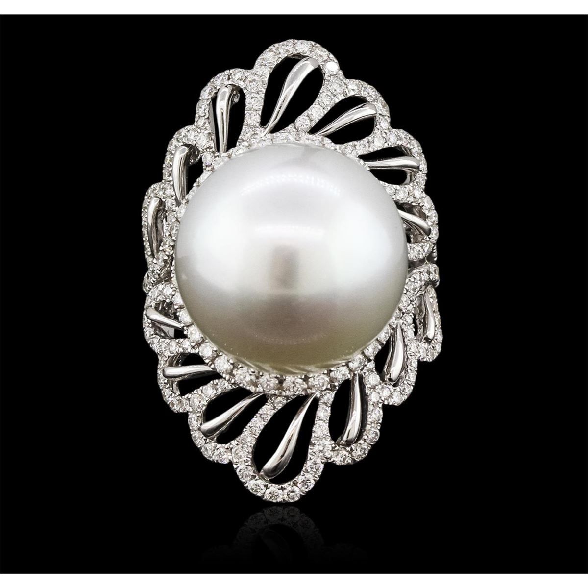 One ring featuring: 18KT white gold weighing 9.34 grams containing one pearl measuring approximately 16.00mm and 220 diamonds with a total weight of 1.44ct.