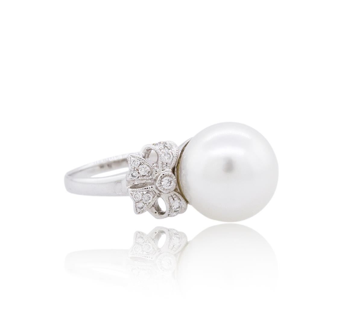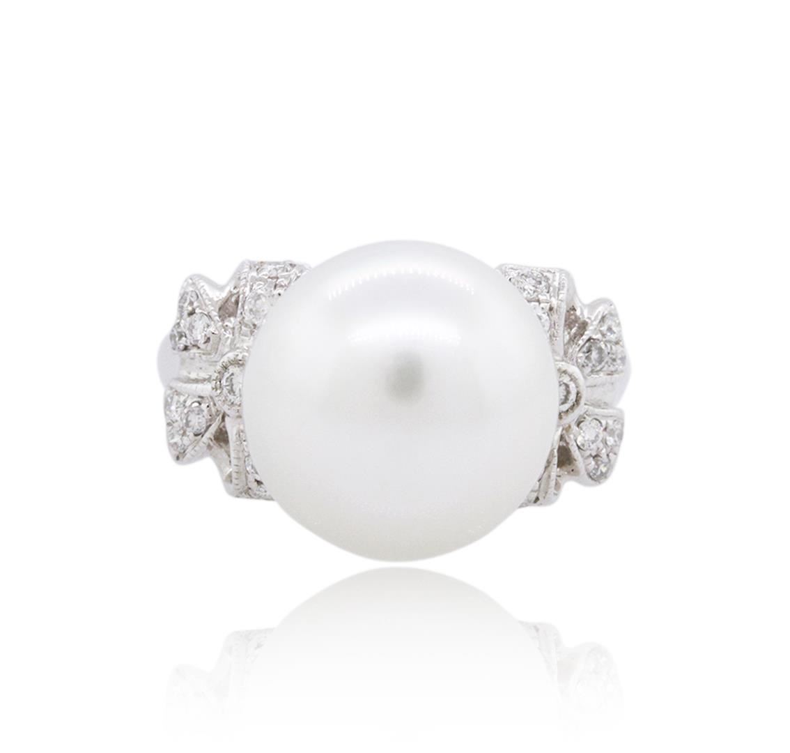 One ring featuring: 18KT white gold weighing 3.84 grams containing one pearl measuring 12.00 mm and 22 round cut diamonds with a total weight of 0.27cts.
