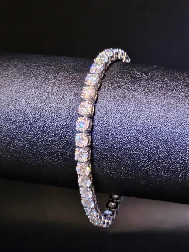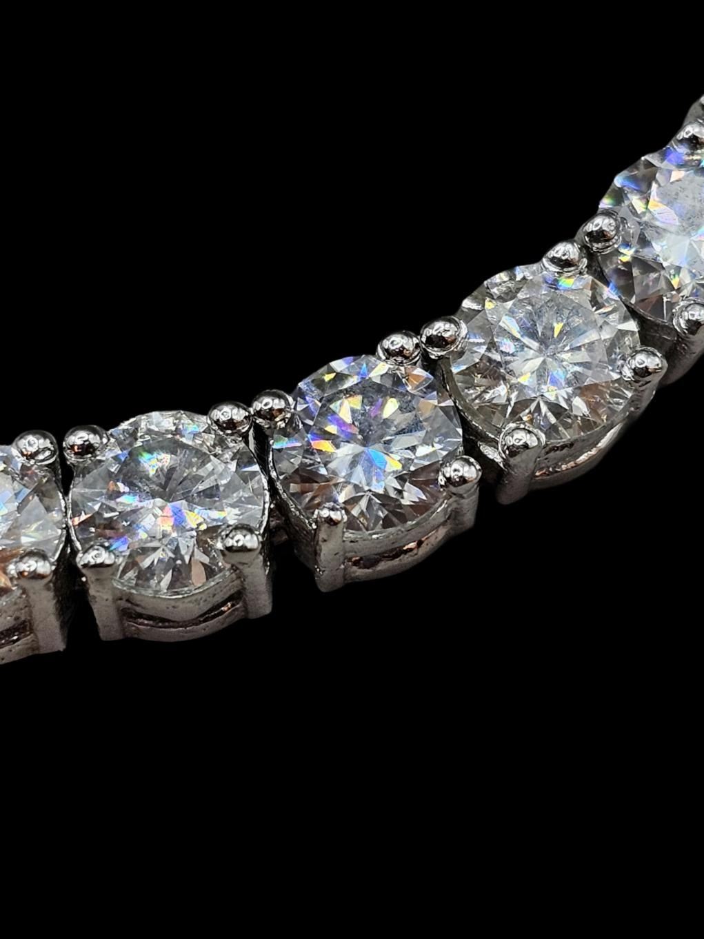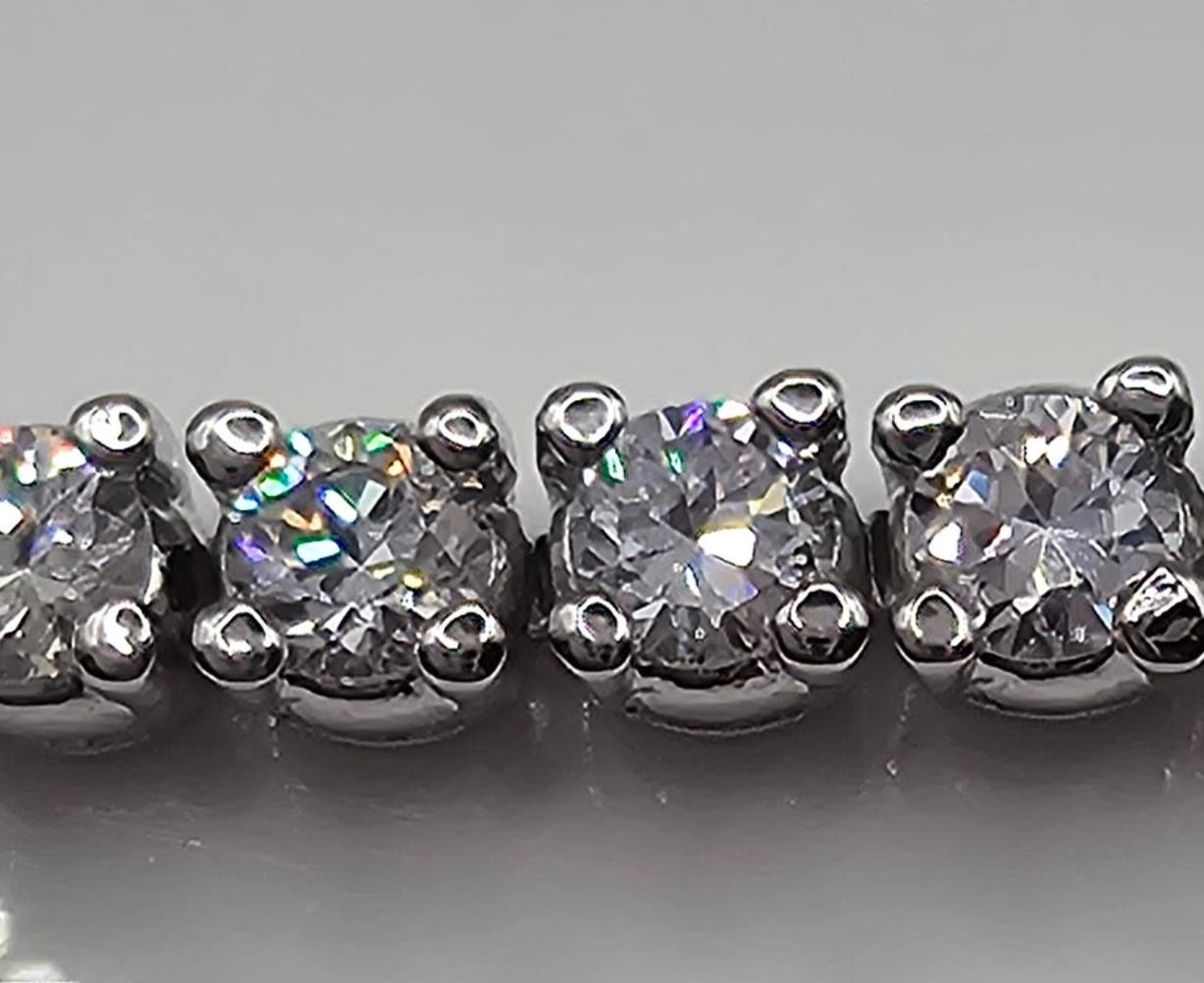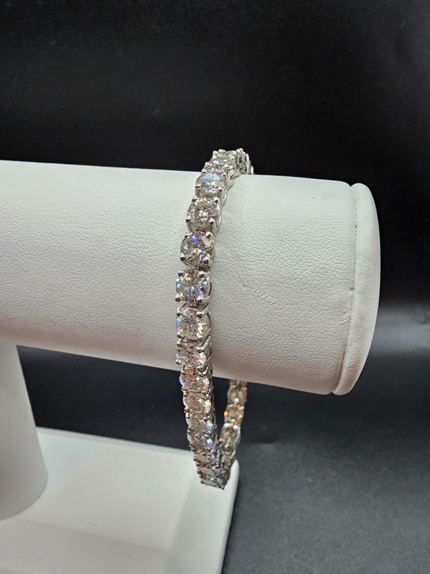 Stunning 18 Kt White Gold Plated Lab Simulated 26 Cwt. White Diamond Bracelet These 26 Gemstones are Brilliant Round Cuts Measuring 6.5 mm. They are Mounted In 18 Kt White Gold Overlay. Approx 7 " long. The total gram wt. is a healthy 18.5 total grams. This Bracelet is Gorgeous!!!