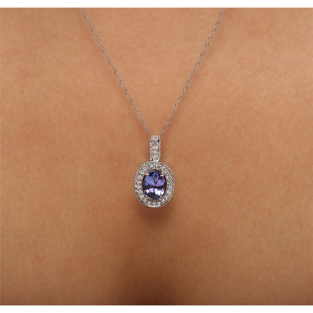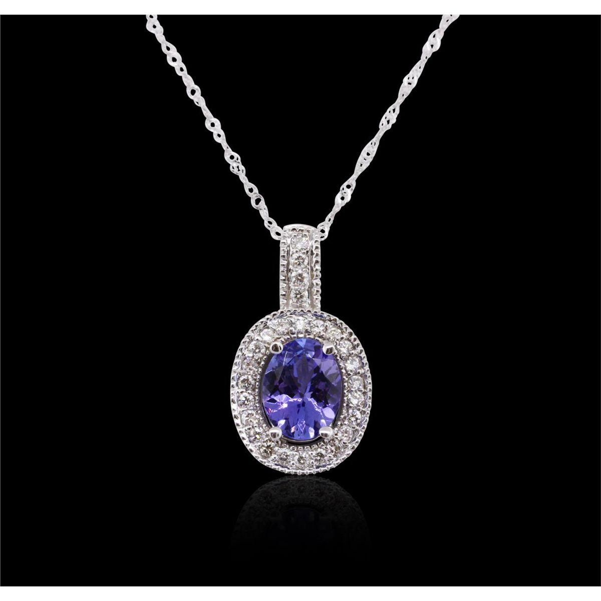 One pendant with chain featuring: 18KT white gold weighing 5.50 grams containing one tanzanite measuring 9 x 7 mm and 26 brilliant cut diamonds with a total weight of 0.34cts