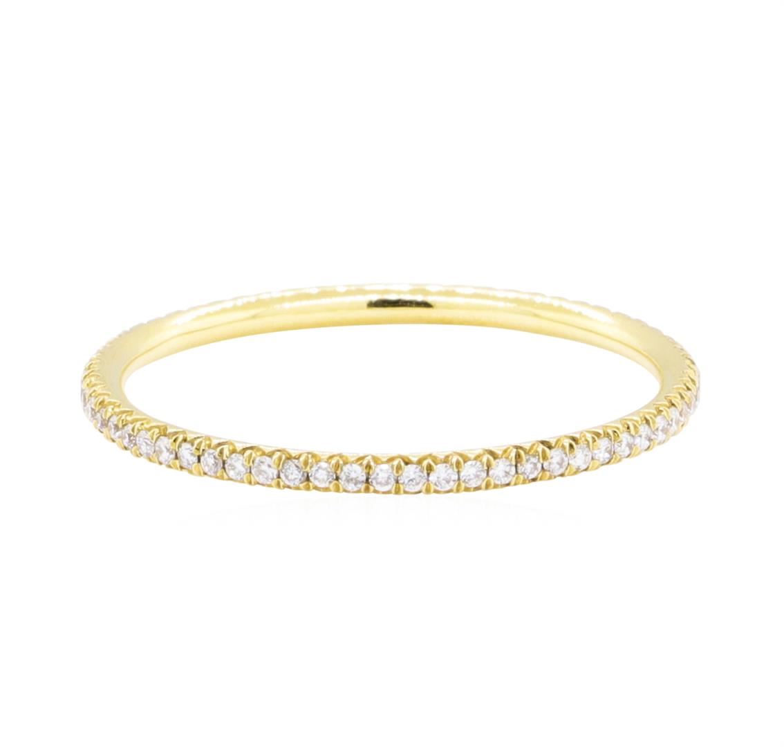 One eternity ring featuring: 18KT yellow gold weighing 1.0 grams containing diamonds weighing 0.25ctw. The ring is a size 6.