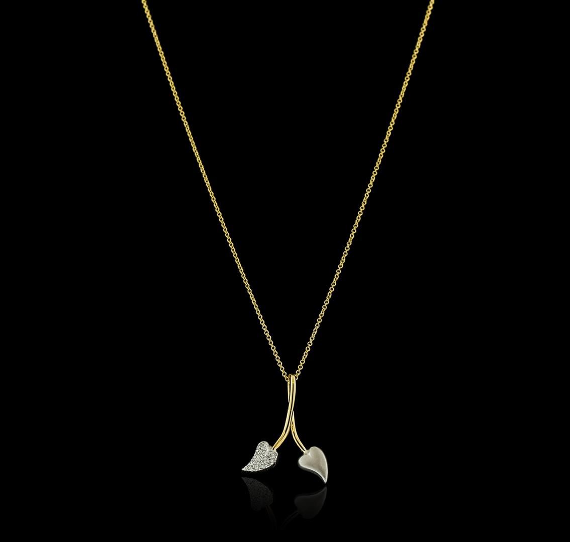 One pendant with chain featuring: 18KT yellow gold weighing 5.20 grams containing diamonds with a total weight of 0.25ct.