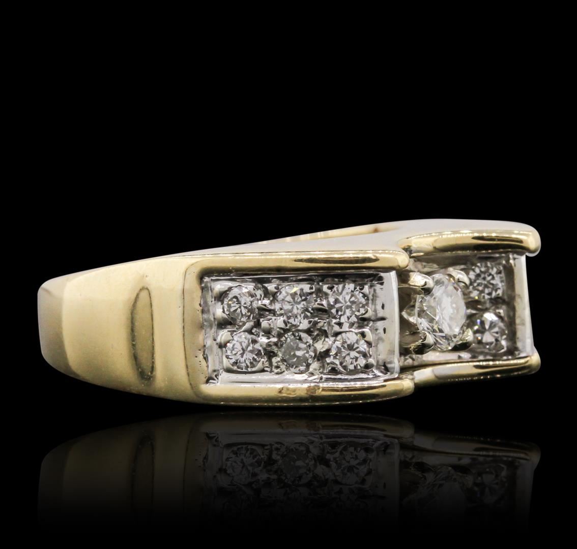 One ring featuring: 18KT Yellow Gold with a total weight of 8.60 grams, and Pave Set Round Diamond Center with a total weight of 0.45ctw.