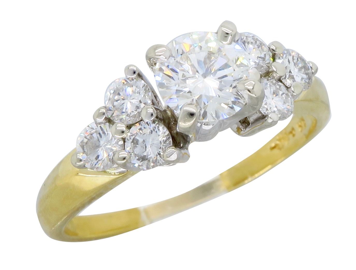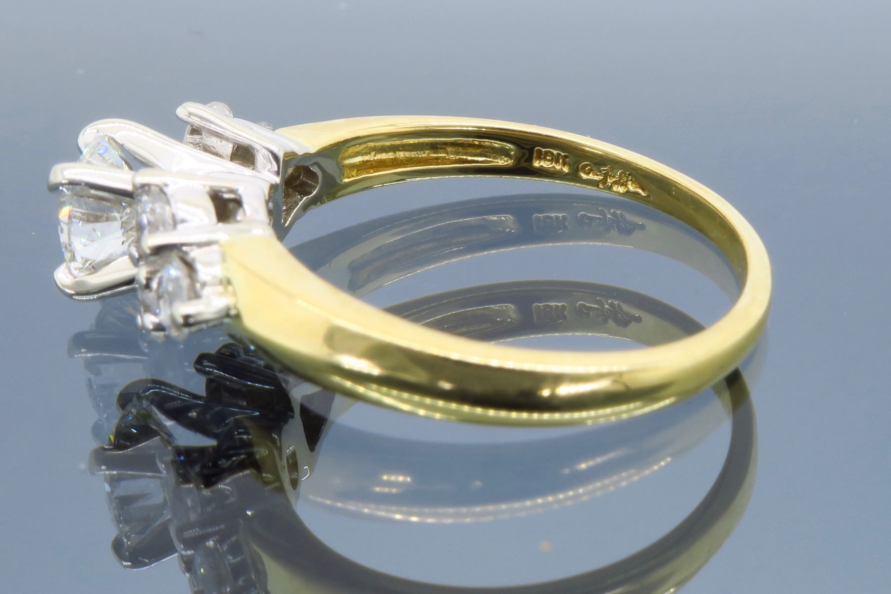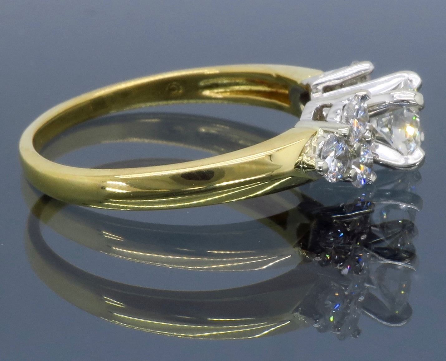 One 18KT Yellow Gold 0.53ct GIA Cert Diamond Ring. (1) Round GIA Certified Diamond with a total weight of 0.53cts with a color of H and clarity of SI-2. Round side Diamonds with a total weight of 0.50cts. Total weight of this ring is 3.8 grams.
