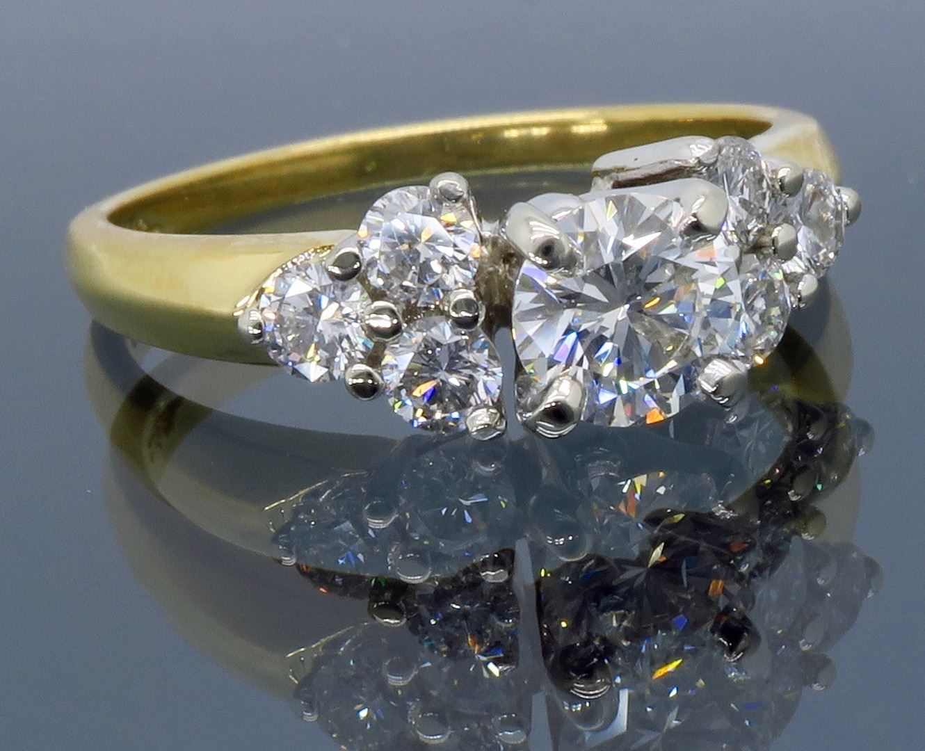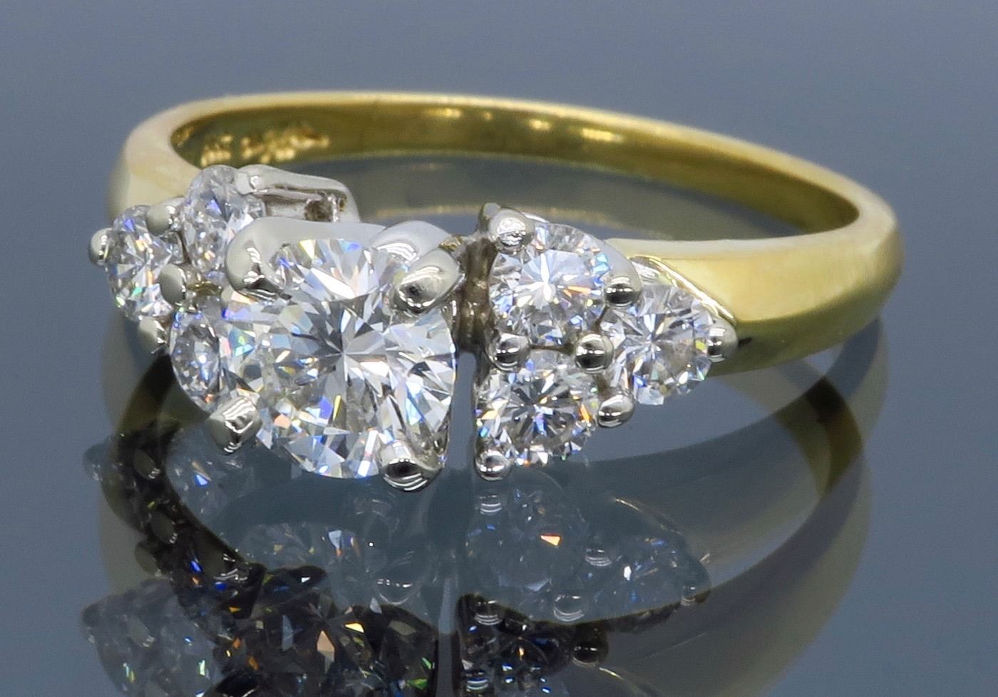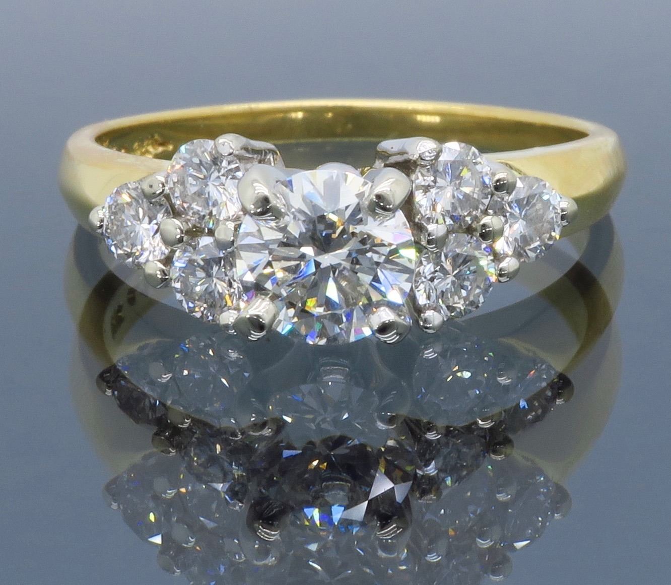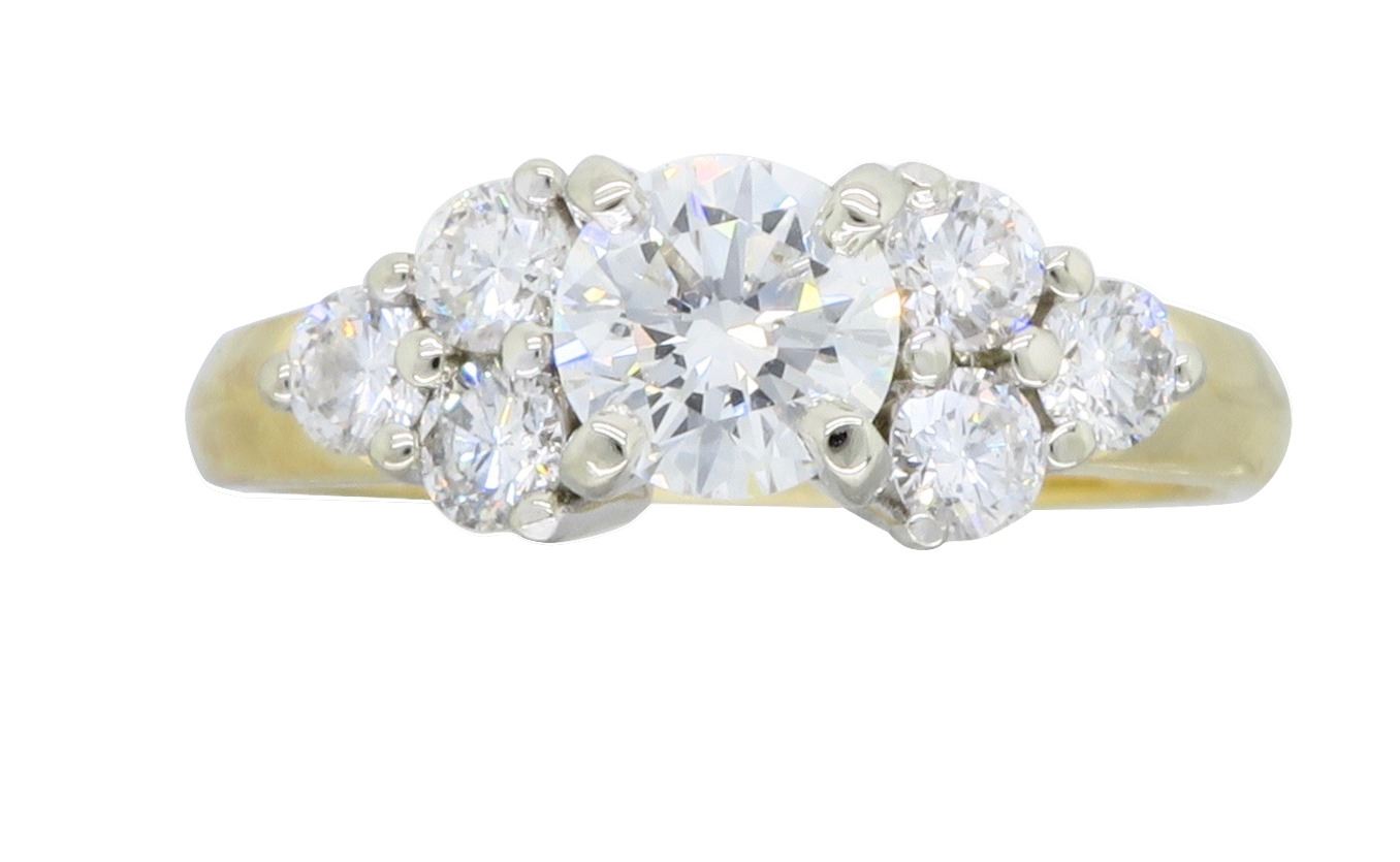 One 18KT Yellow Gold 0.53ct GIA Cert Diamond Ring. (1) Round GIA Certified Diamond with a total weight of 0.53cts with a color of H and clarity of SI-2. Round side Diamonds with a total weight of 0.50cts. Total weight of this ring is 3.8 grams.