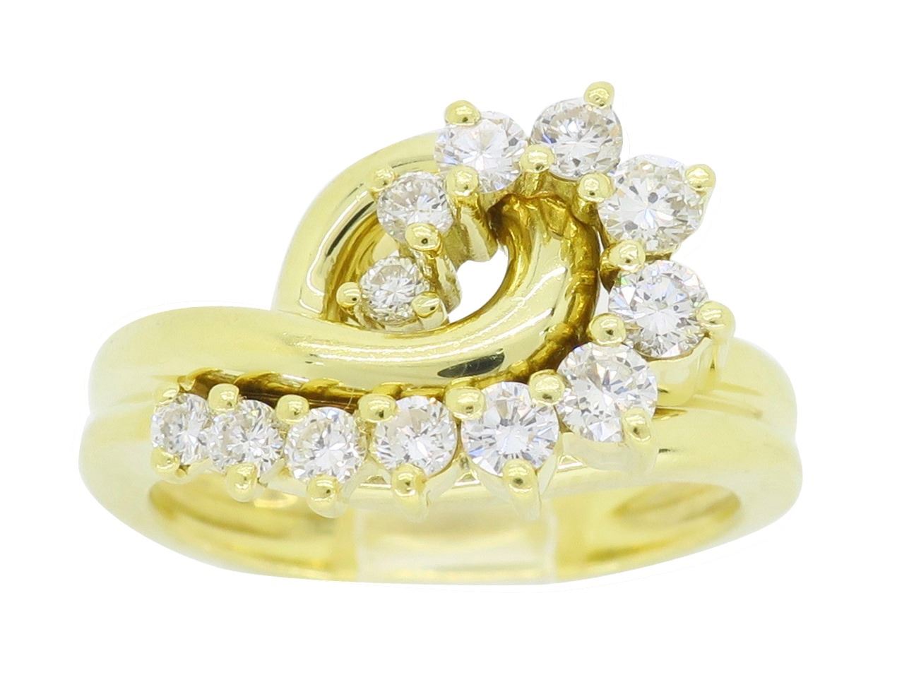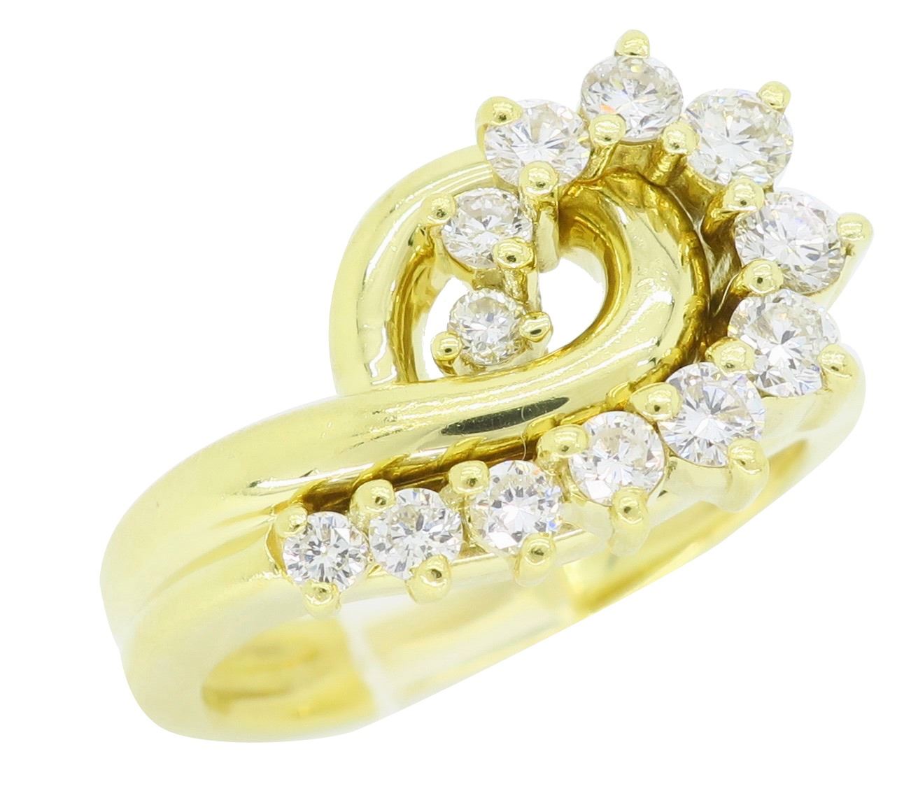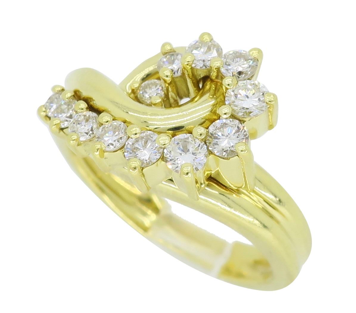 One 18KT Yellow Gold 0.60ctw Diamond Ring. Round Diamonds with a total weight of 0.60cts with a color of G-J and clarity of VS-1 to VS-2. Total weight of this ring is 9.1 grams. Ring size is 6.75.