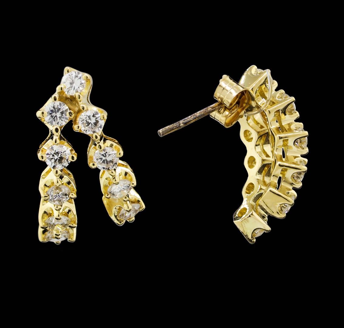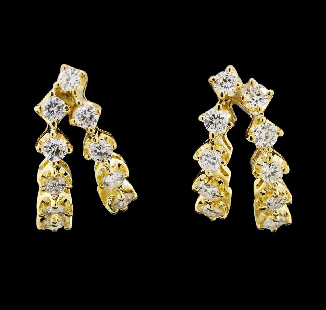 One pair of Ladies earrings featuring: 18KT yellow gold weighing 3.4 grams containing diamonds weighing 0.80ctw.
