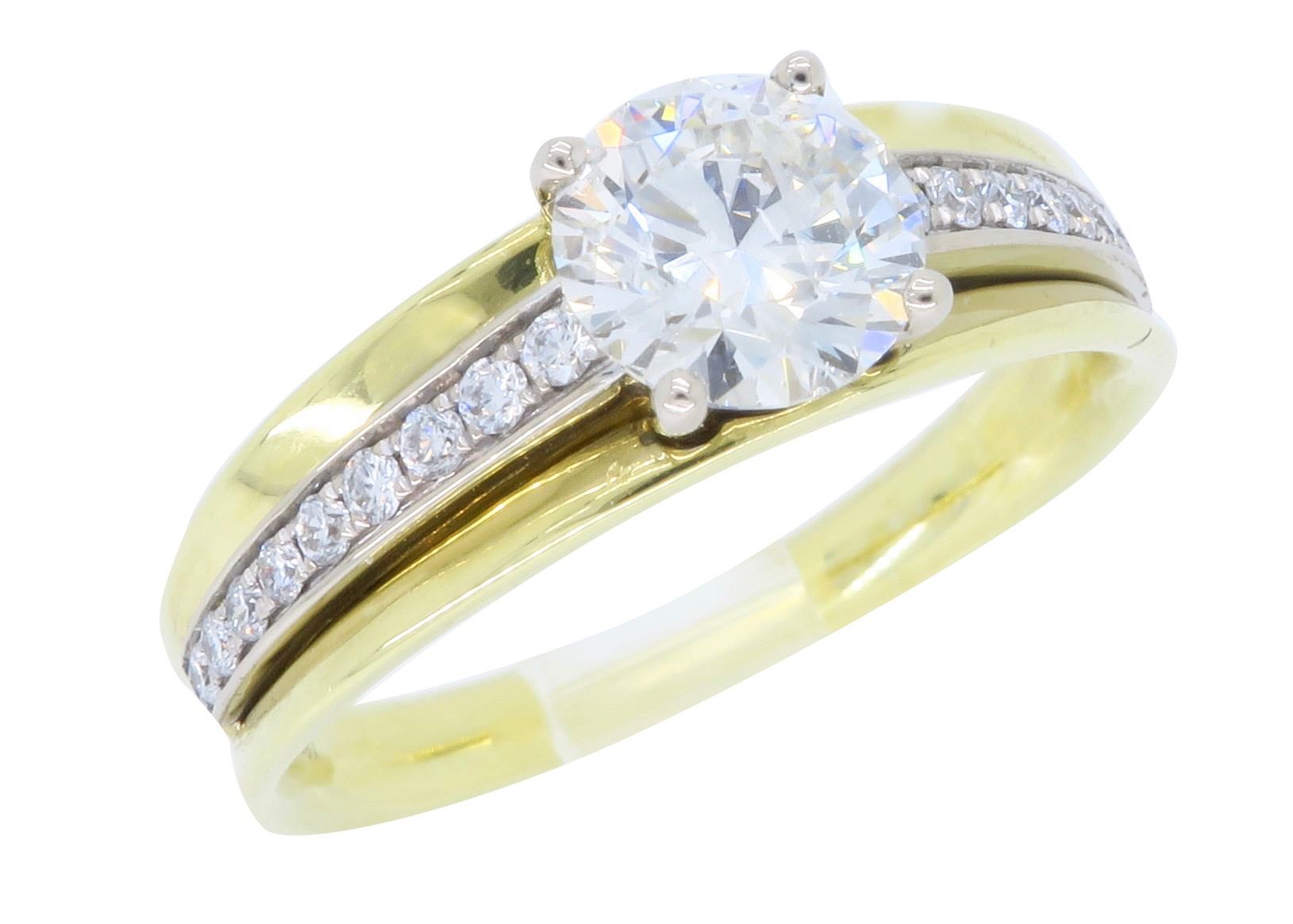One 18KT Yellow Gold 0.98ctw Diamond Ring. (1) Round center Diamond with a total weight of 0.84cts with a color of H-I and clarity of I-1. Round side diamonds with a total weight of 0.14cts. Total weight of this ring is 4.6 grams.